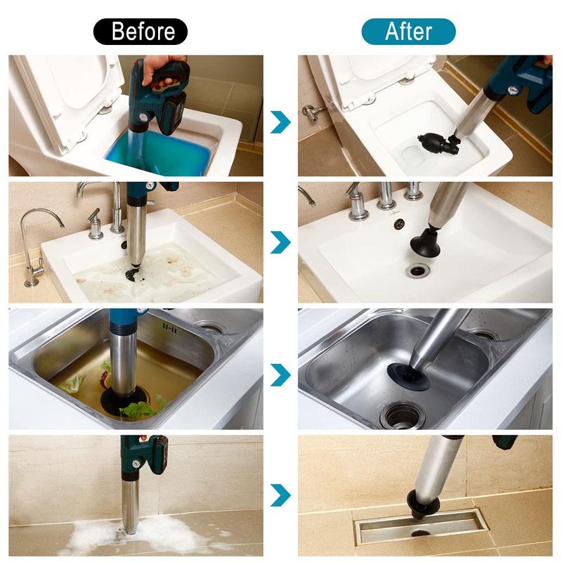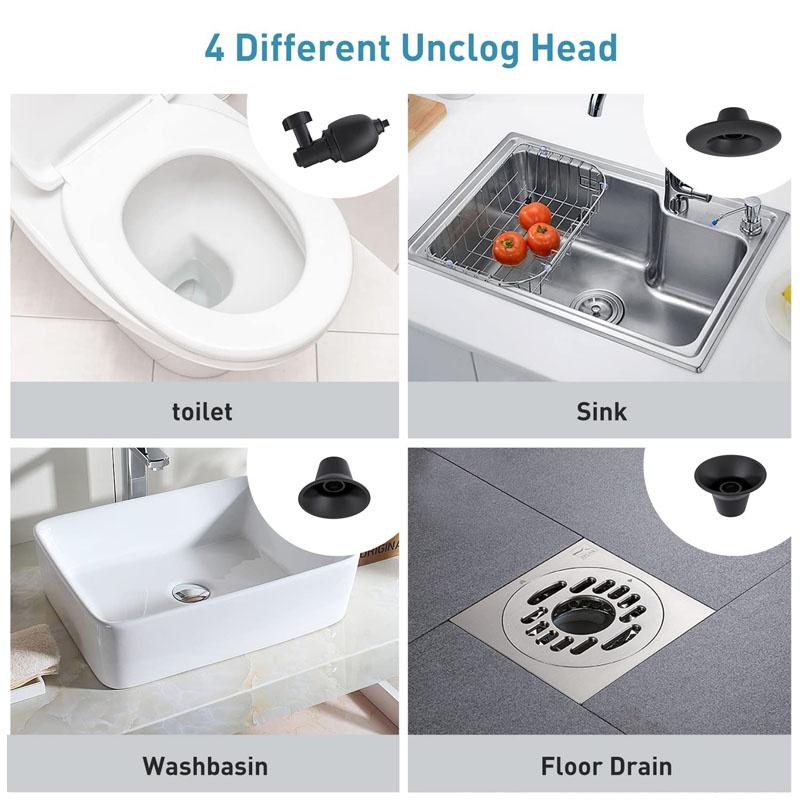 【Применение】 Воздушный поршень для снятия унитаза поставляется с несколькими различными незасоренными насадками, вы можете менять насадку в зависимости от ситуации, ее можно использовать в туалете, ванной, душе, кухне, раковине, бассейне для мытья, кастрюлях, сливе в полу. , засоренные трубы и т. д.. Всевозможные засоры, вызванные мусором, волосами, тканью, можно решить за считанные секунды с помощью пневматики высокого давления.