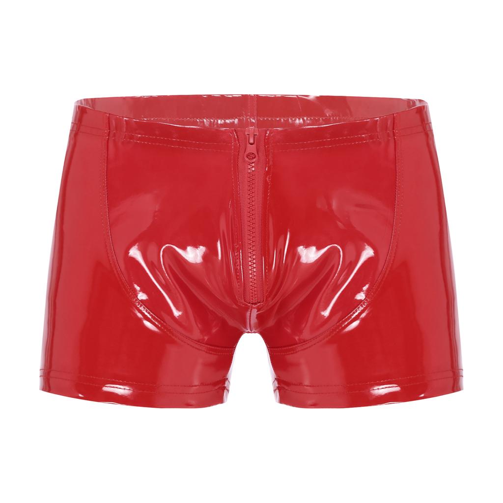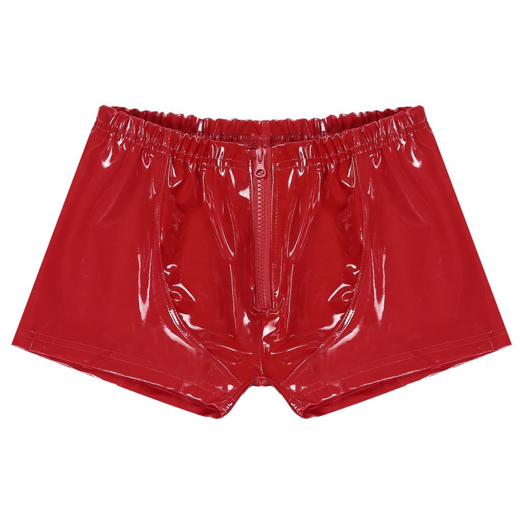 Мужские шорты из лакированной кожи с мокрым эффектом на молнии, шорты с низкой посадкой