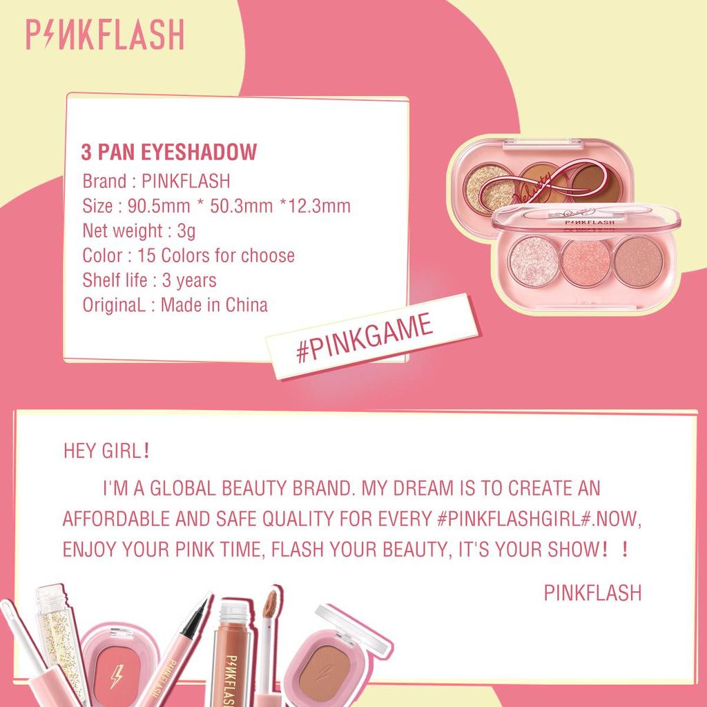 PINKFLASH, 3 цвета, блестящая палитра теней для век, водостойкая, долговечная, нелипкая, с высоким содержанием пигмента, тени для век, пудра, косметика для макияжа