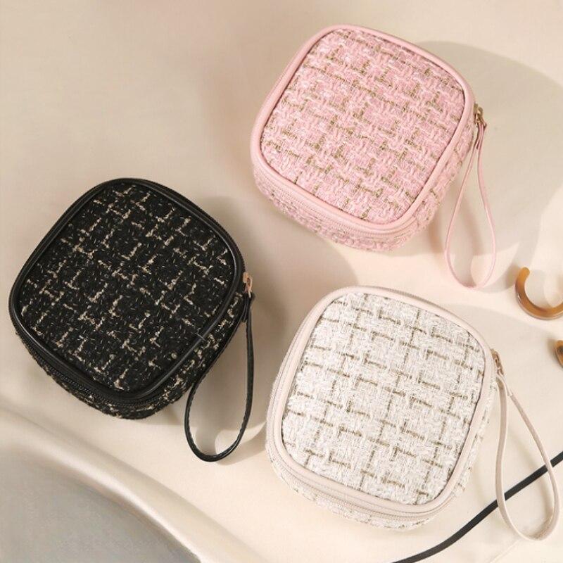 Большая квадратная клетчатая косметичка, помада, косметичка, денежная карта, мешочек для монет, туалетные принадлежности, органайзер для гигиенических салфеток, маленькая сумка-тоут