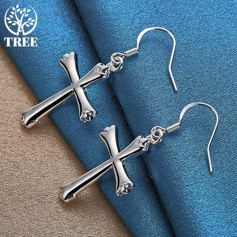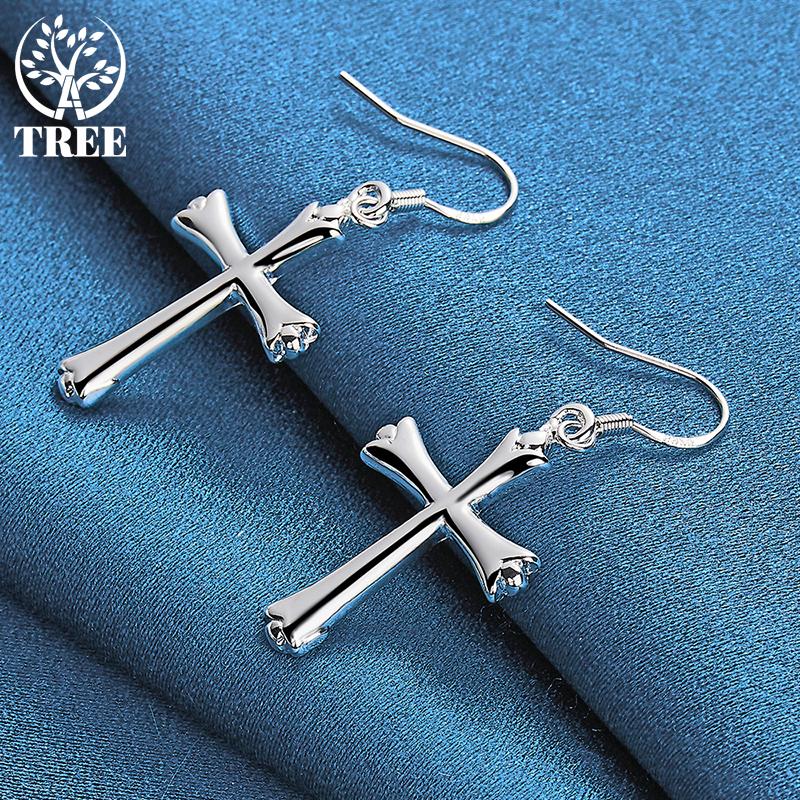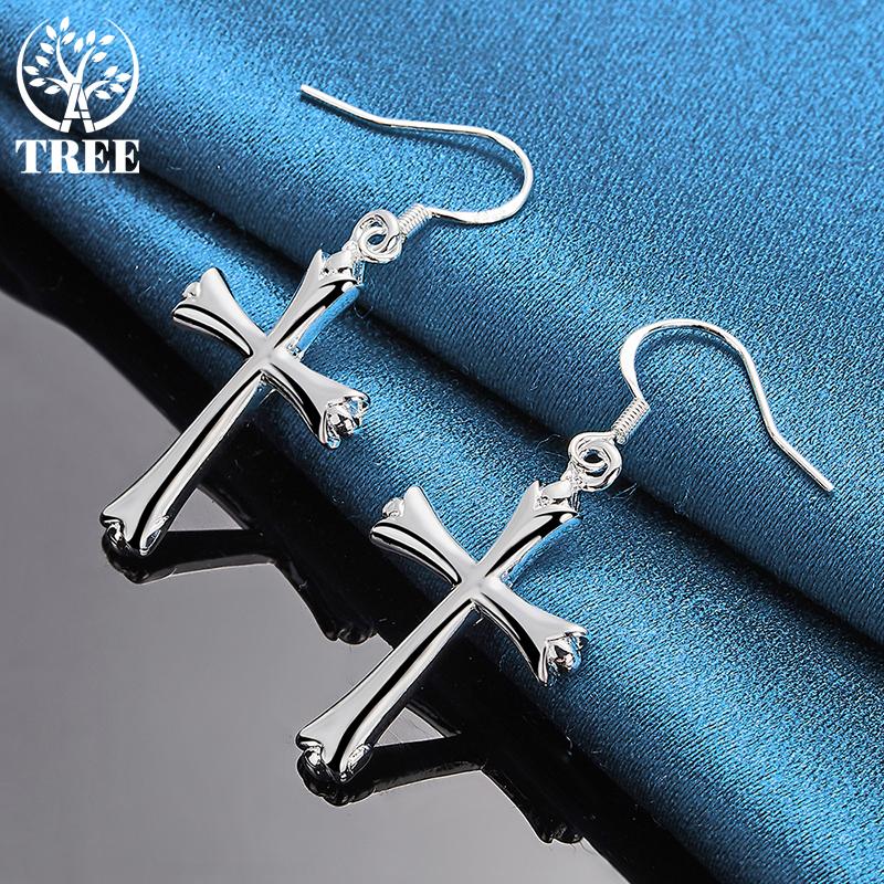 Ювелирные изделия из серебра 925 пробы с крестом и серьгами-каплями