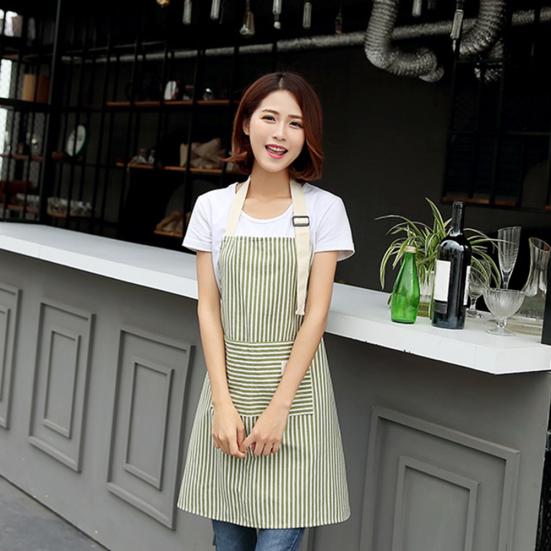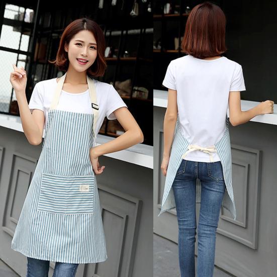 Полосатый кухонный фартук без рукавов для женщин, кухонный бретель с карманом