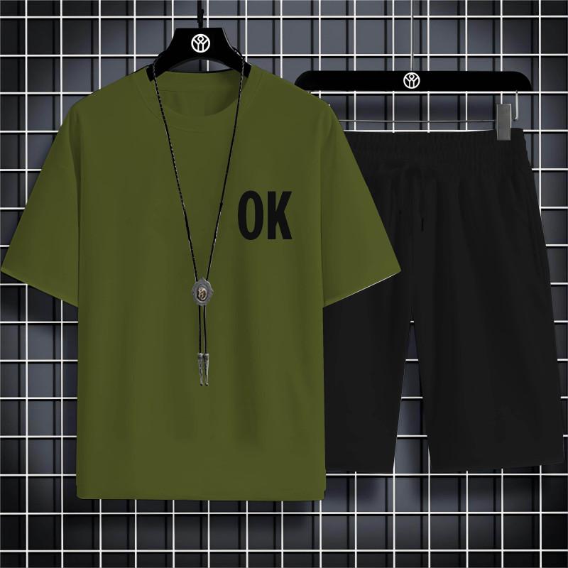 Летняя мода, повседневная мужская футболка в спортивном стиле с алфавитом ок и принтом, с круглым вырезом и коротким рукавом, шорты на шнуровке, пляжный костюм