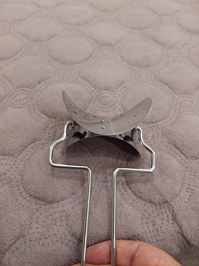 Пришёл заказ за 6 недель примерно. Простое устройство, можно разобрать на 2 детали. Удобно обратной стороной нарезать круглые сочни, как раз под размер устройства.