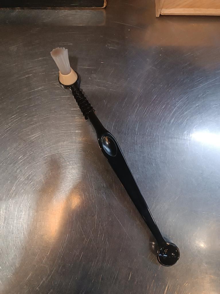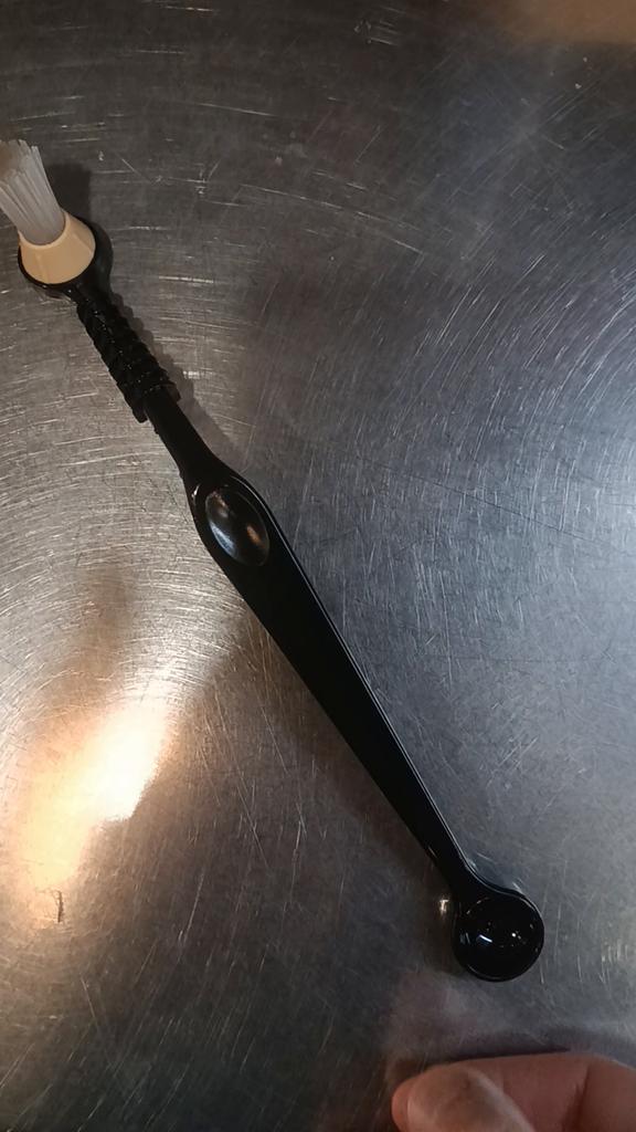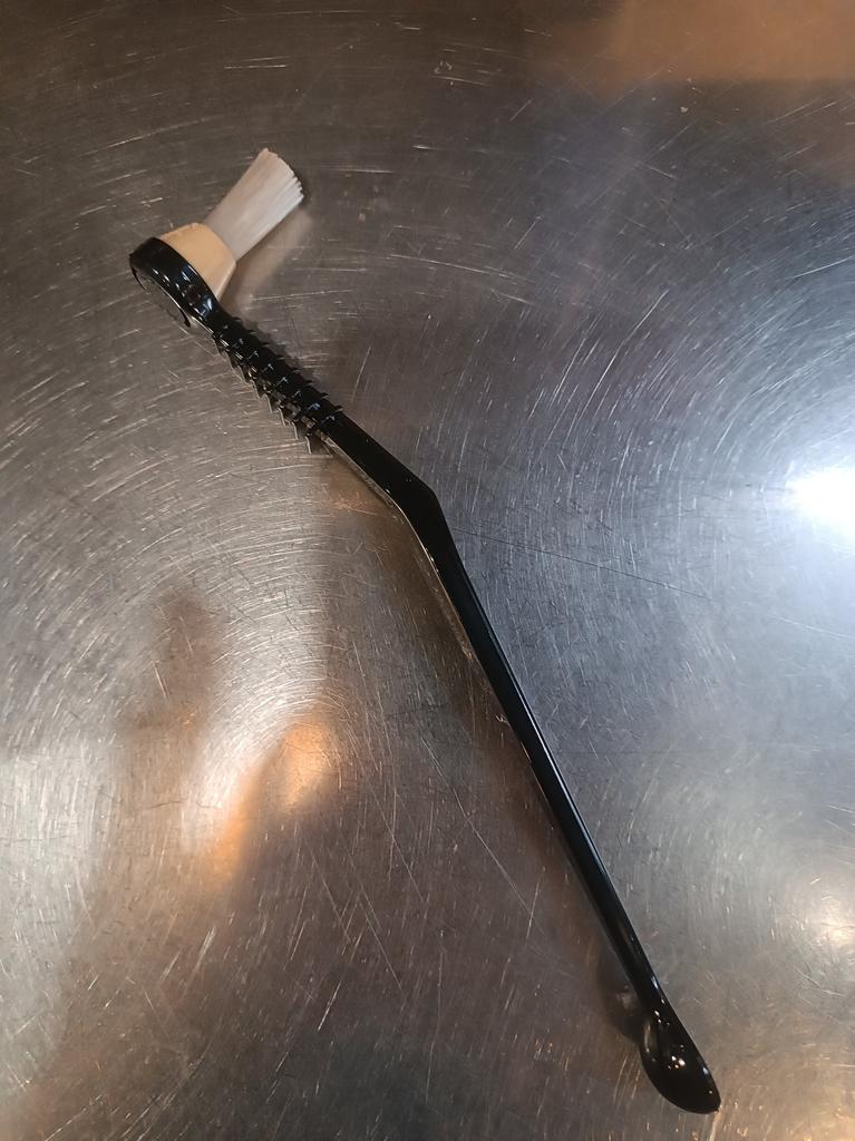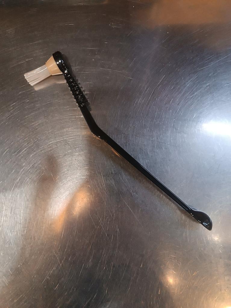 Хорошая щеточка. По фото не поняла думала параллельная губка, а по факту жесткие щетинки. Может и лучше. Так форсунки почистить у кофе машины можно.