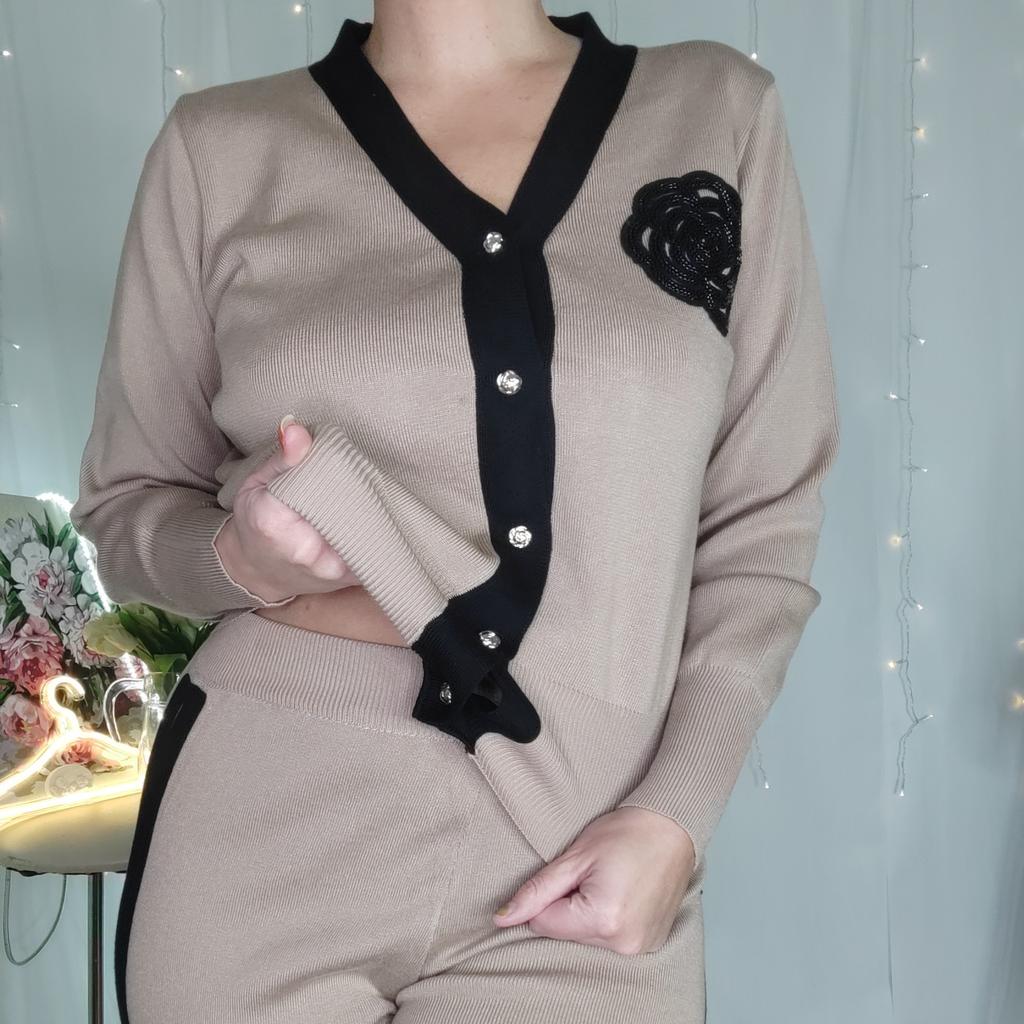Высококачественный повседневный вязаный модный комплект знаменитостей для женщин, осенне-зимняя рубашка со свободными рукавами + драпированные брюки с высокой талией из двух предметов