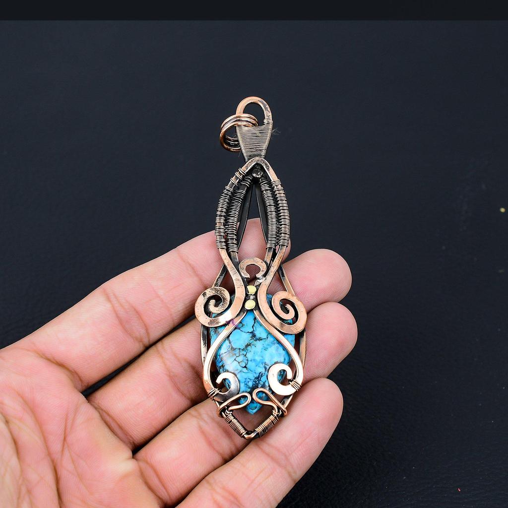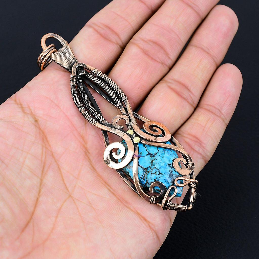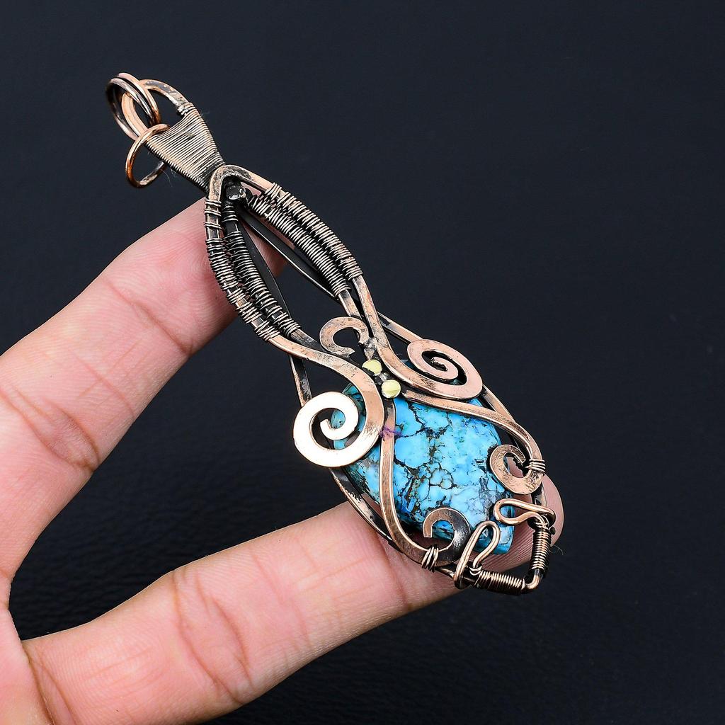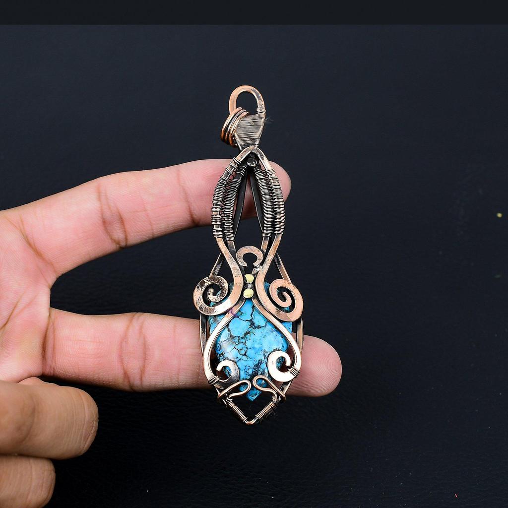 Драгоценный камень с бирюзой и чистой медной проволокой, завернутый в подвеску ручной работы Анк, ювелирные изделия
