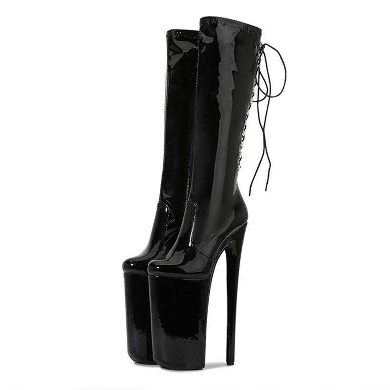 Женские сапоги до колена на очень высоком каблуке 26 см, туфли на тонком высоком каблуке со шнуровкой и молнией, высокие сапоги с круглым носком для ночного клуба и танцев на пилоне