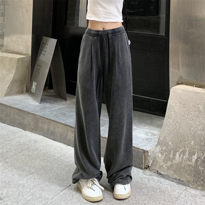 Повседневные брюки женские летние винтажные спортивные штаны с высокой талией серые широкие брюки с прямыми ногами — купить товар онлайн с бесплатной доставкой до всему миру!