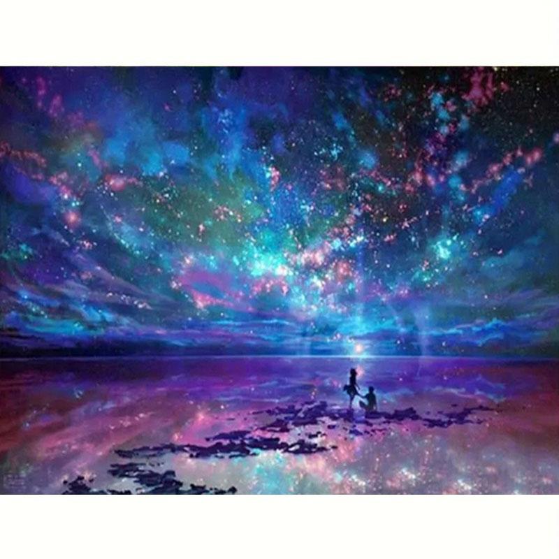 Алмазная картина Астральная полная алмазная вышивка Ночная мозаика Пейзаж со стразами Украшение дома 30x40 см/12x16 дюймов