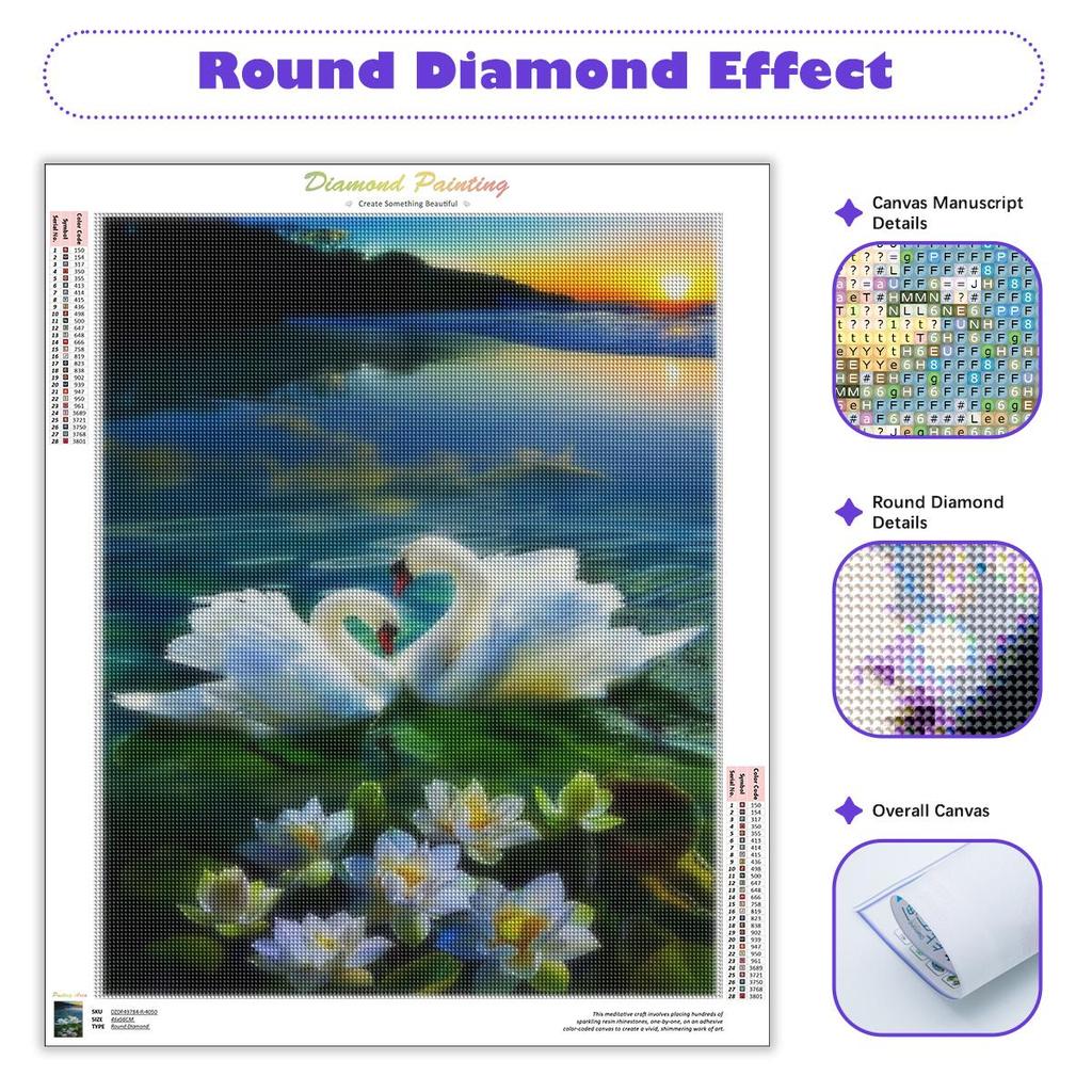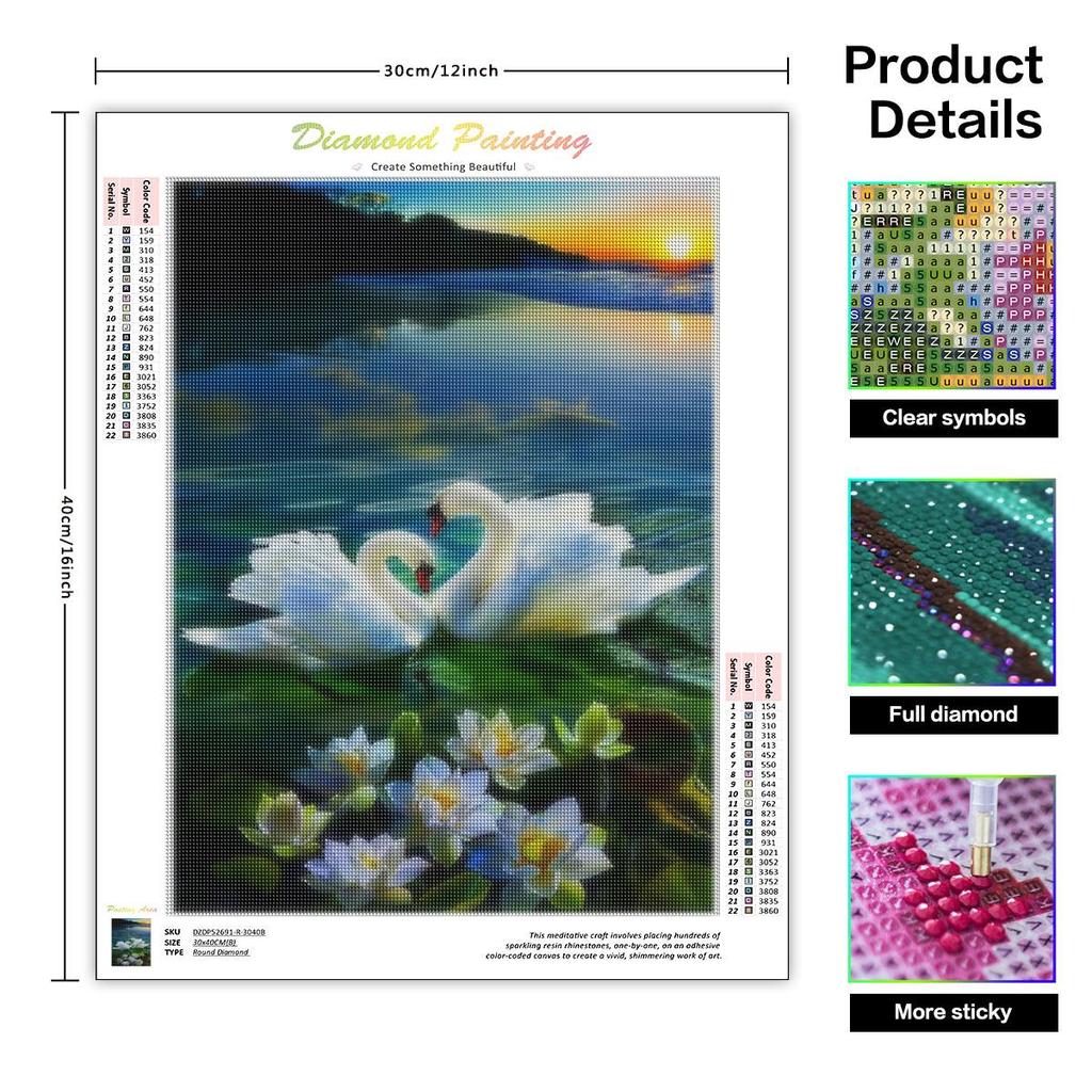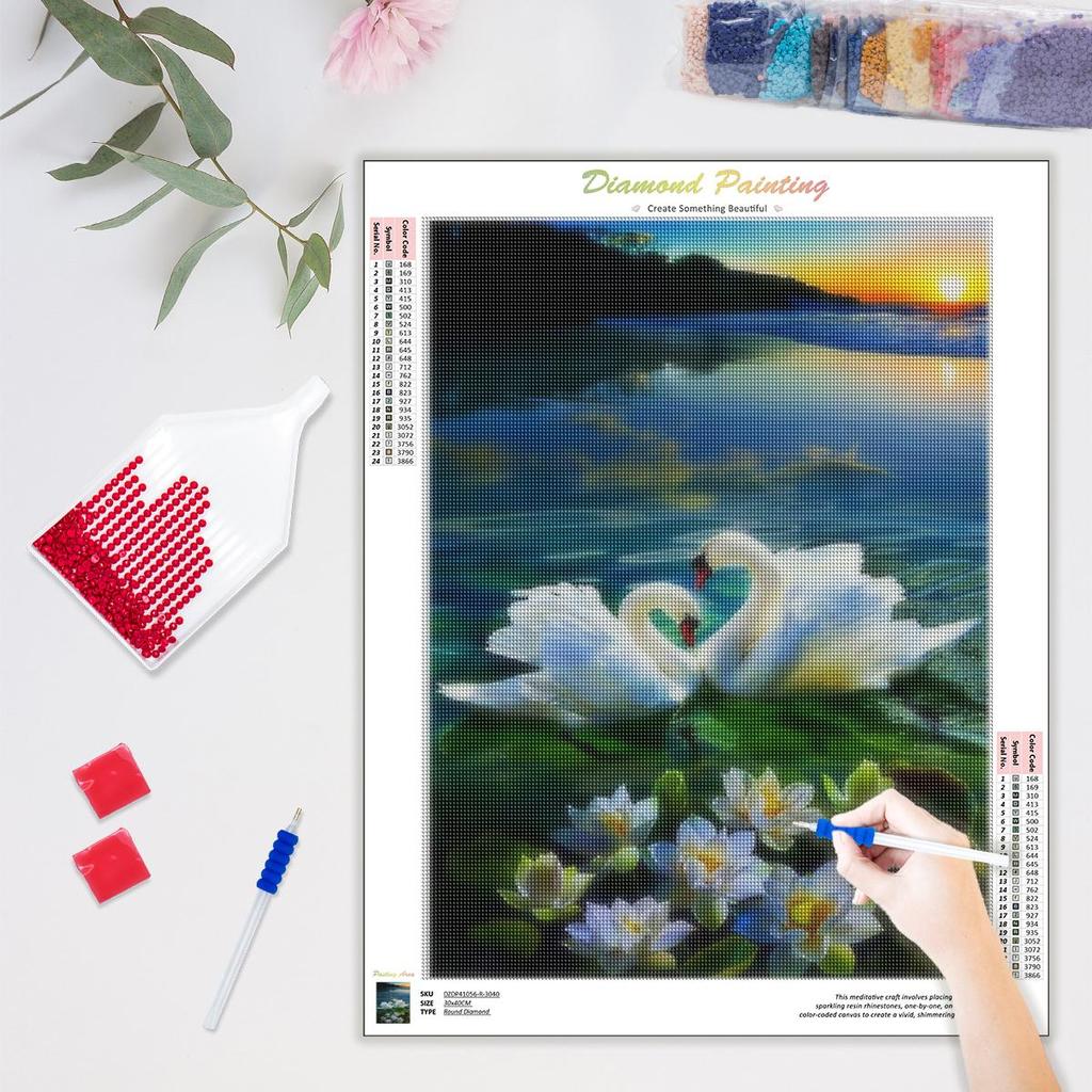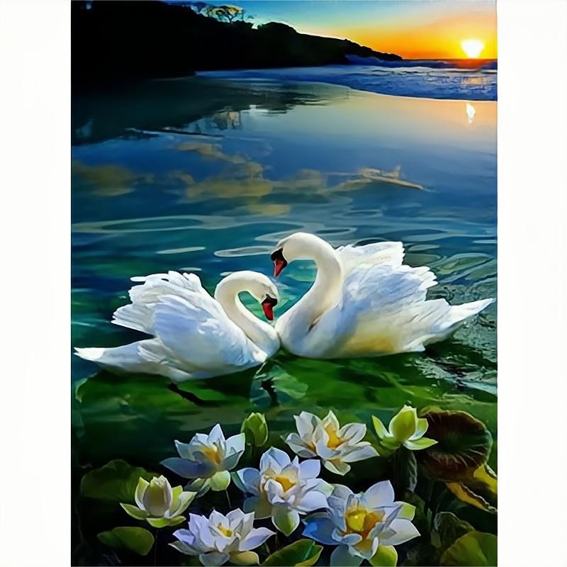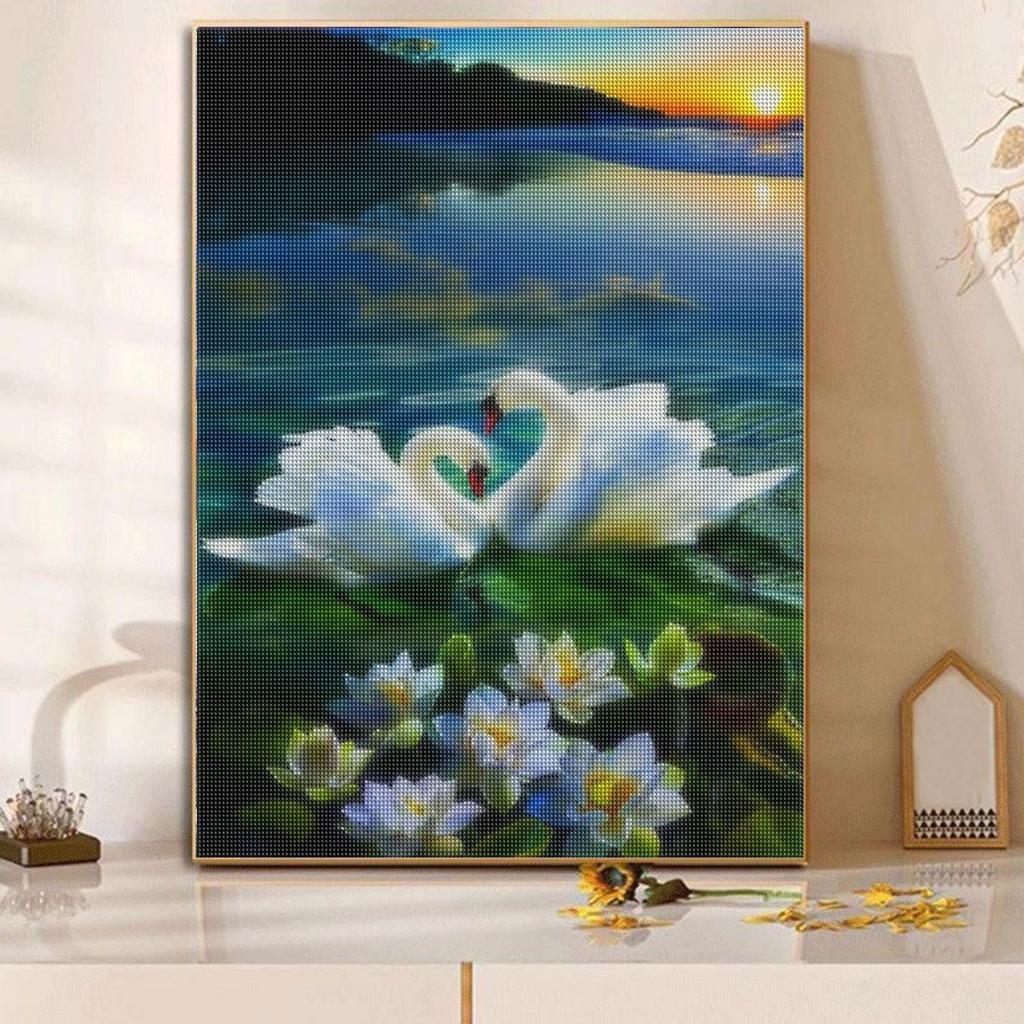 DIY Алмазная картина Животное Лебедь Полный круглый мозаика Набор для вышивания лотоса Ручная работа и творчество Домашний декор Подарок 30x40 см/12x16 дюймов