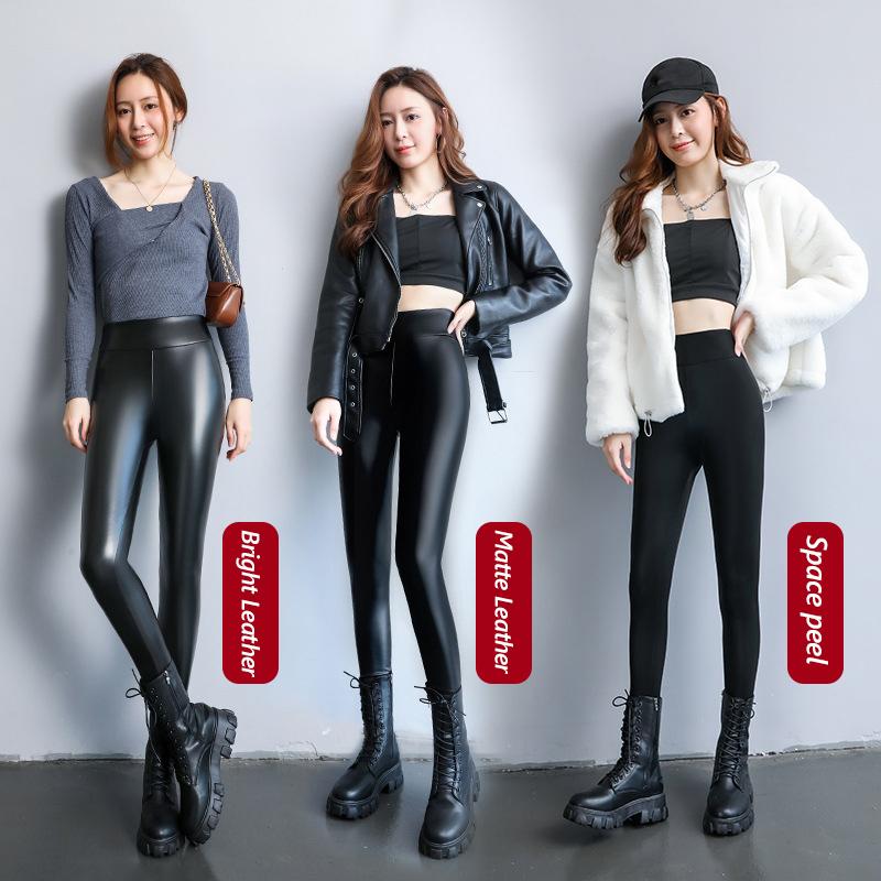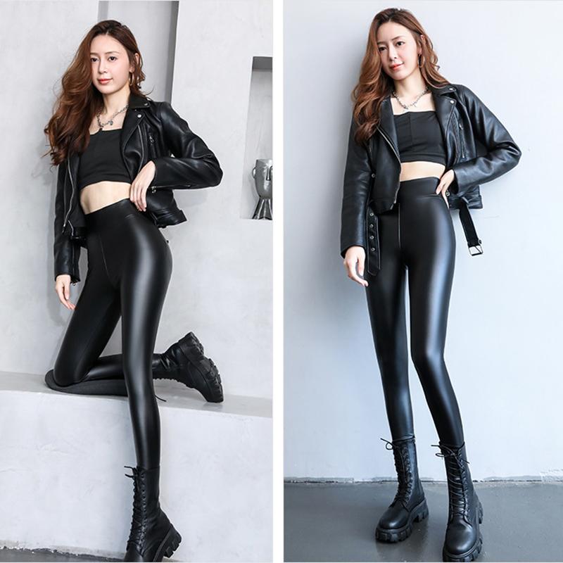 Брюки из искусственной кожи, женские осенне-зимние брюки, леггинсы, бархатные утепленные водонепроницаемые брюки с высокой талией, теплая верхняя одежда