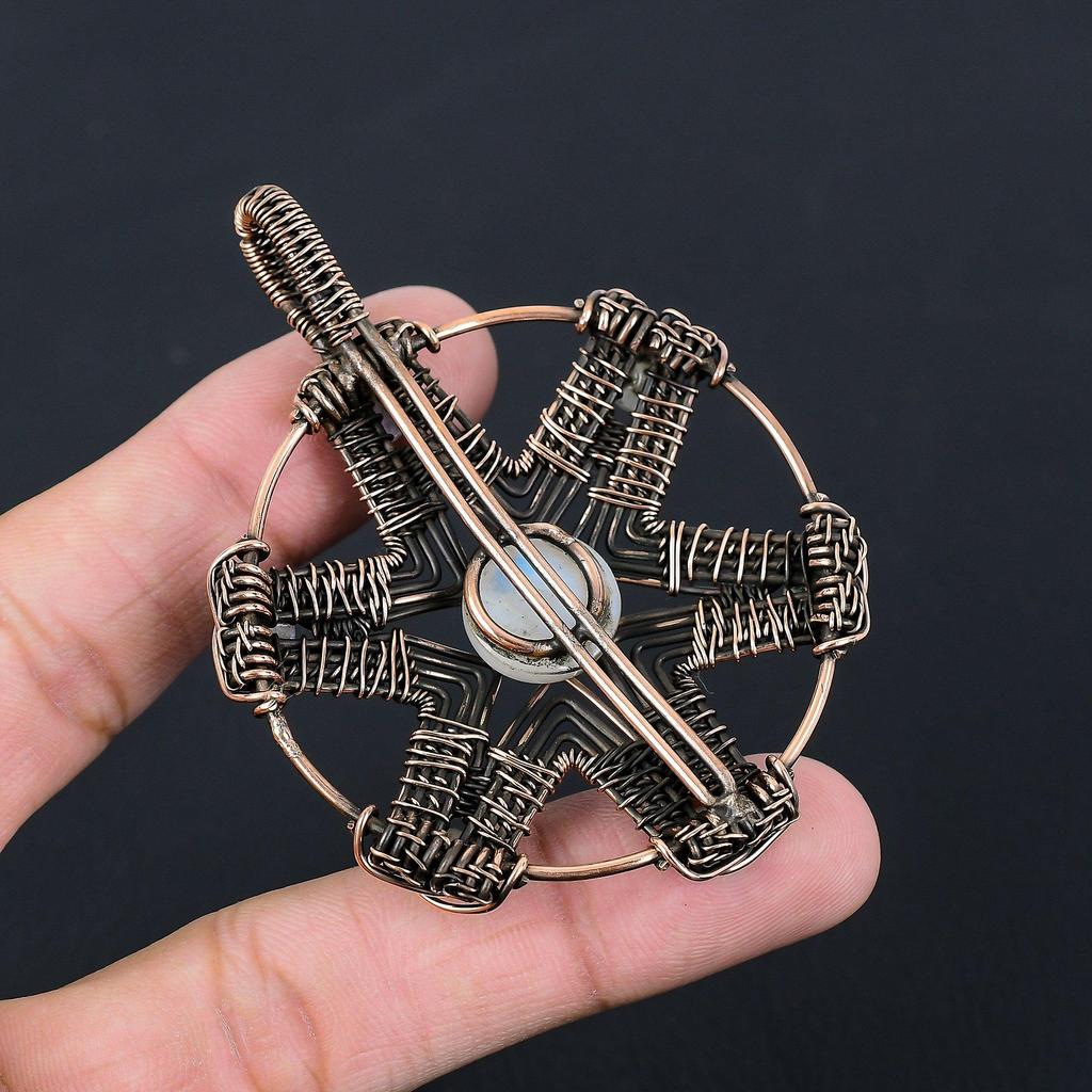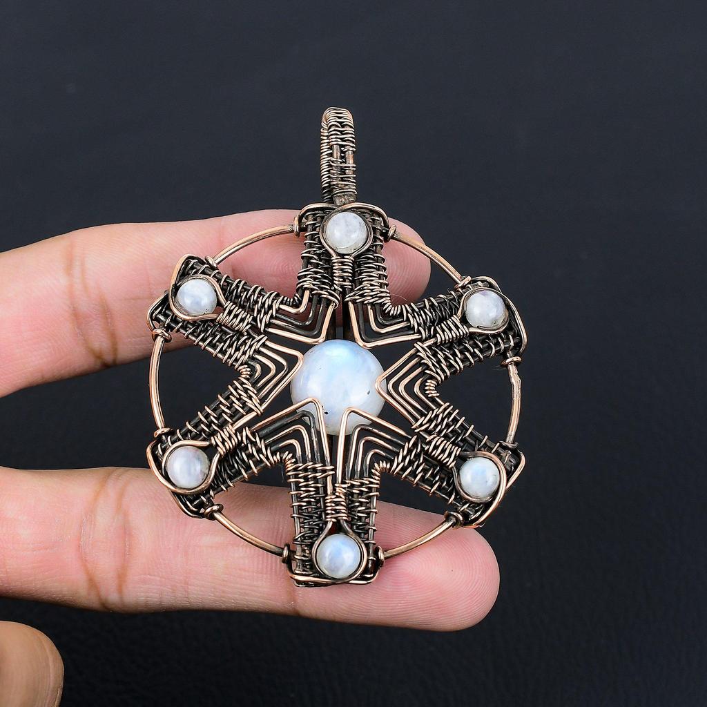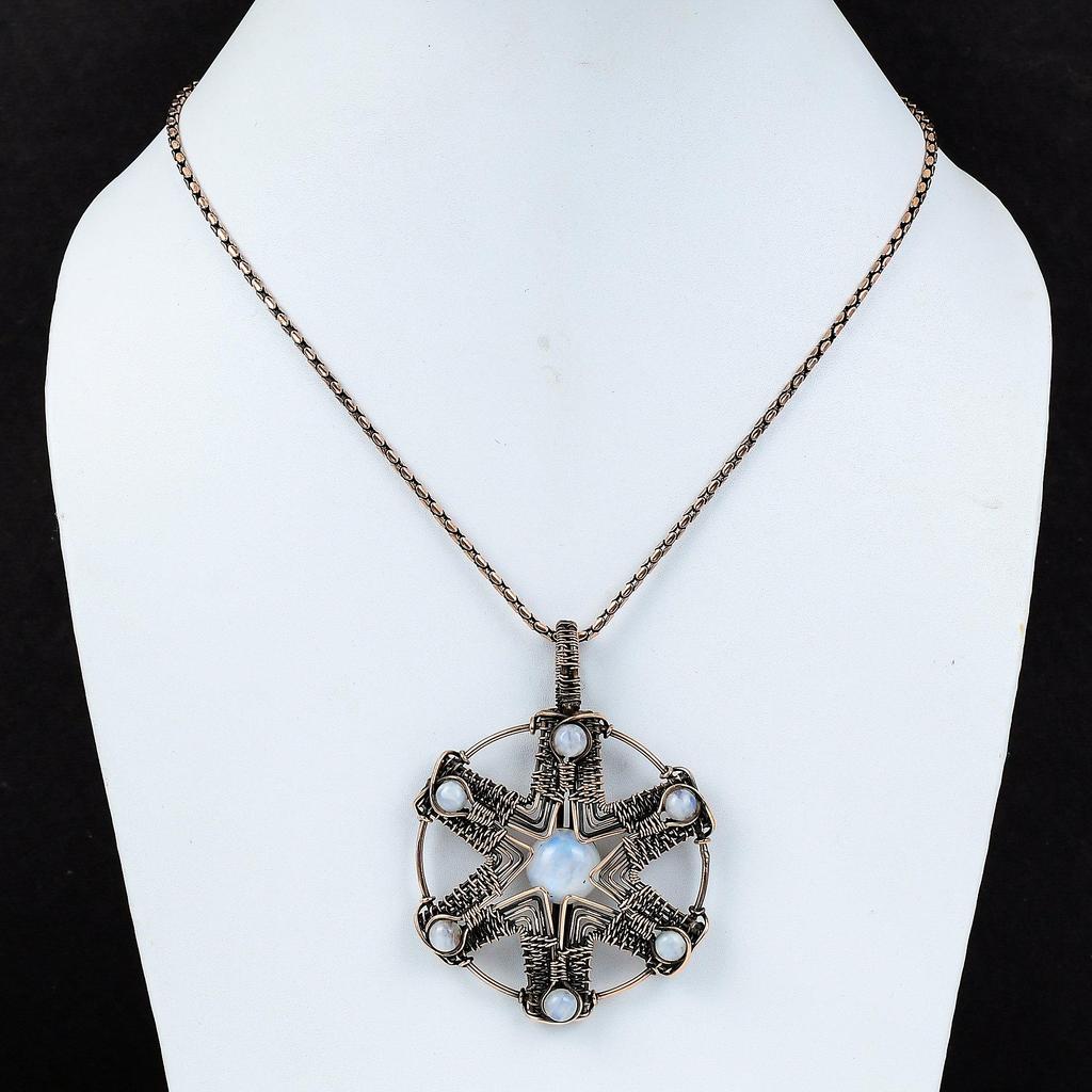 Лунный камень, драгоценный камень, чистая медная проволока, обернутая подвеской ручной работы, ювелирное изделие, подарок для нее