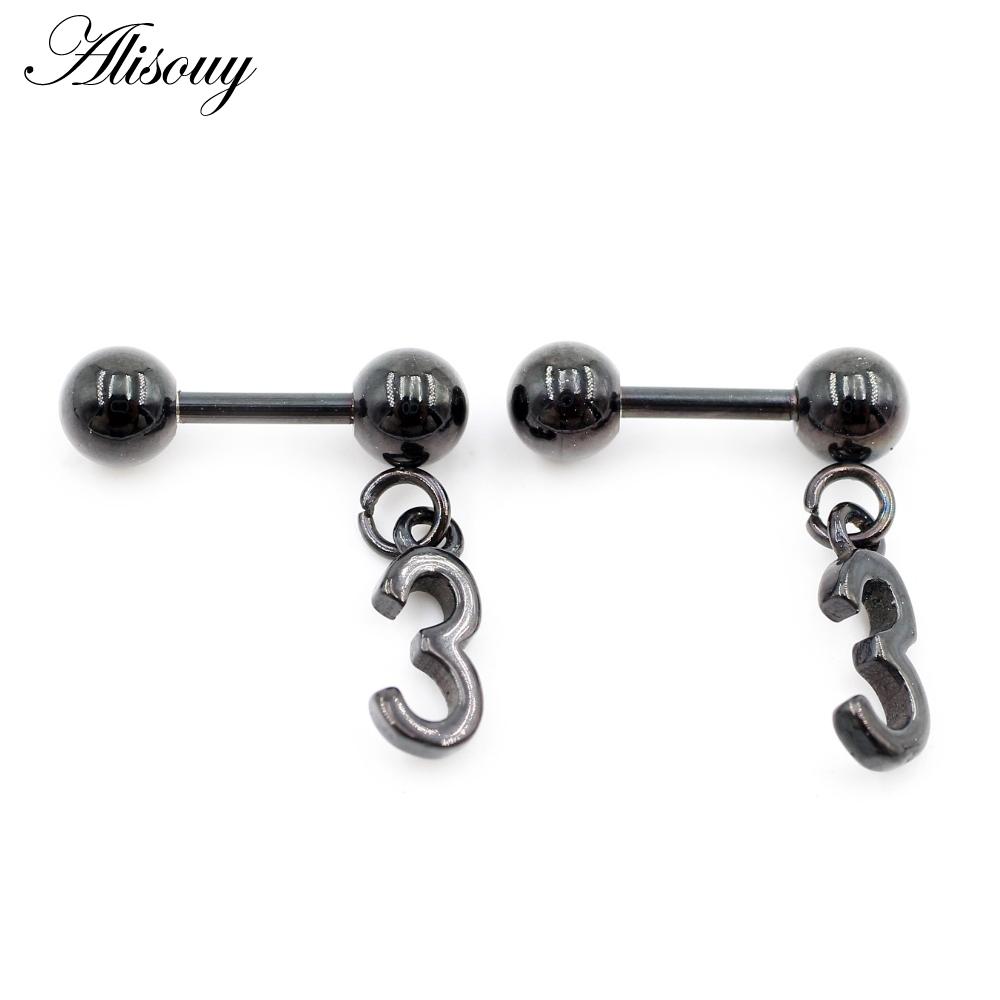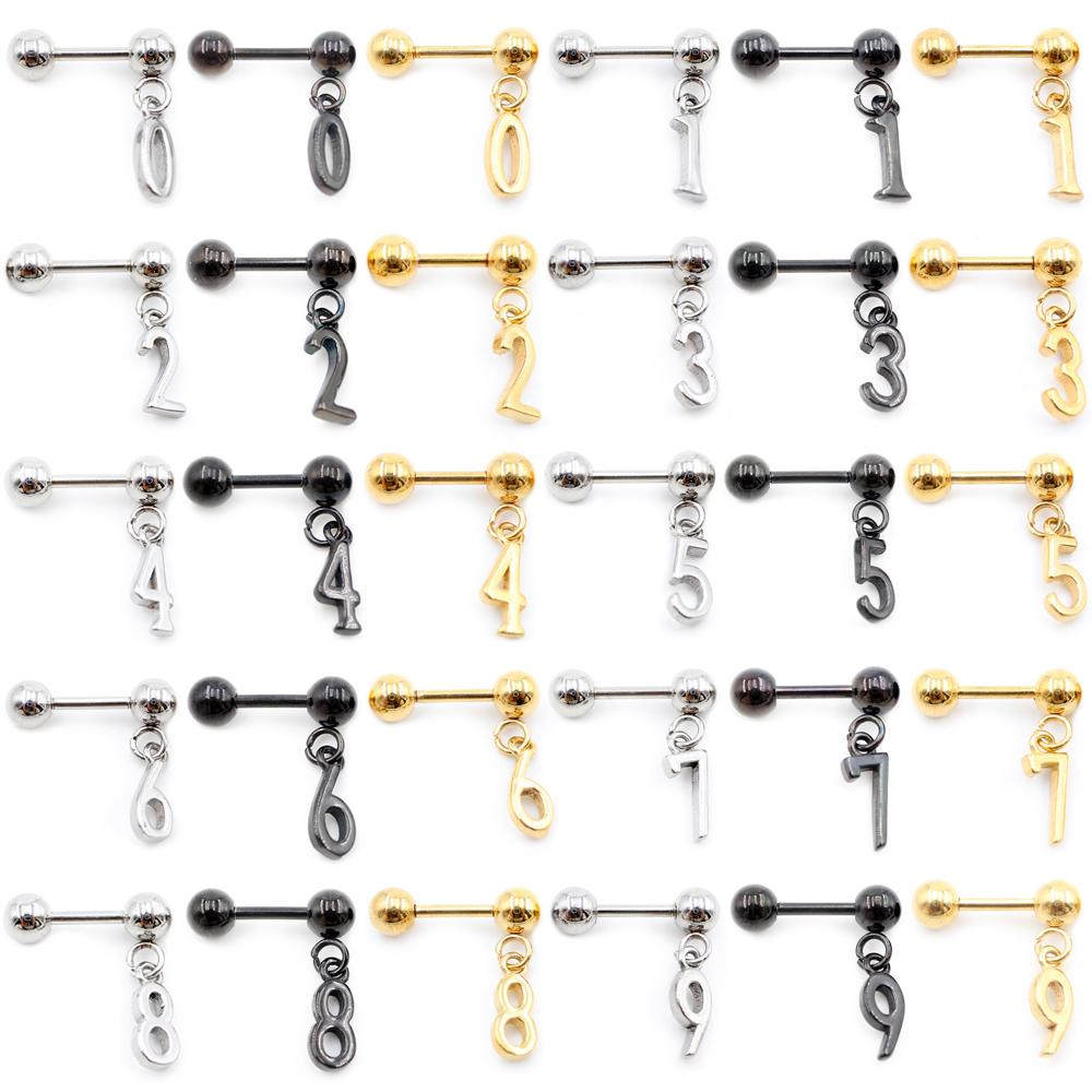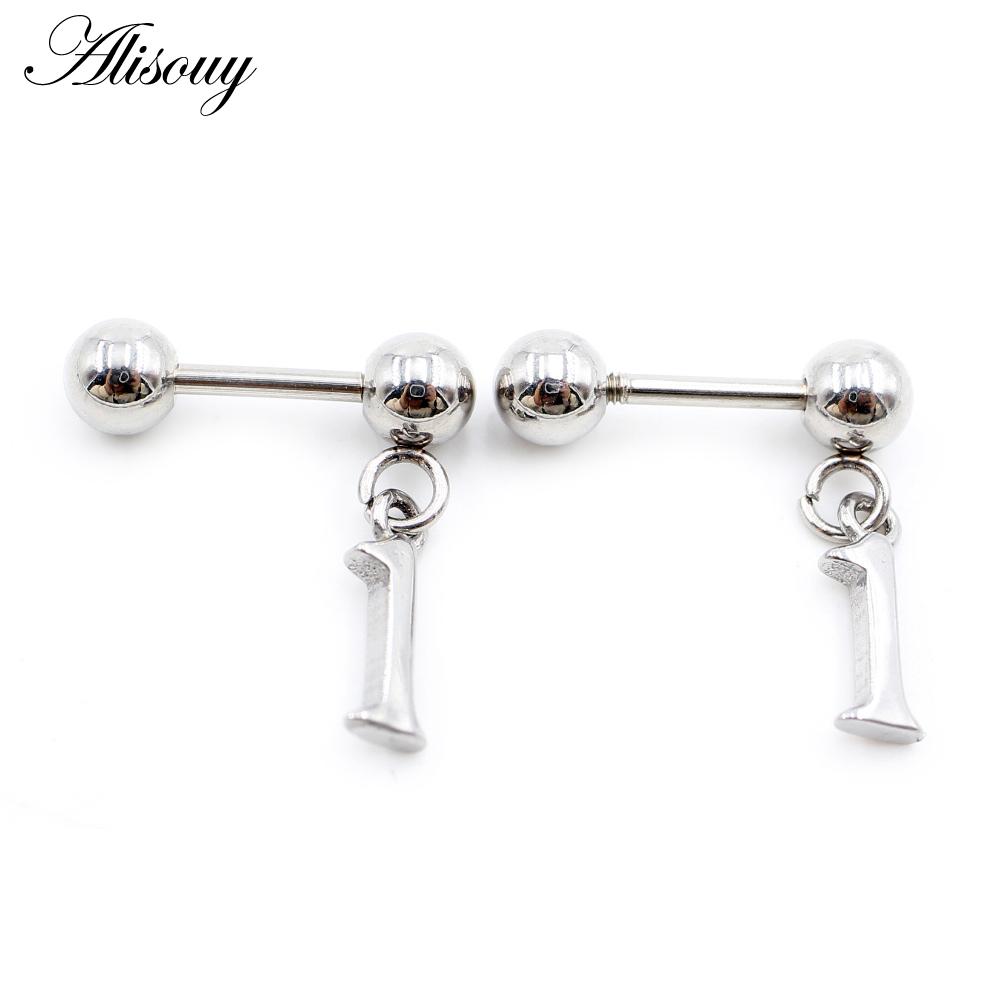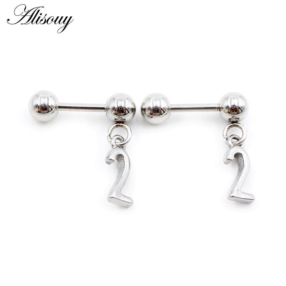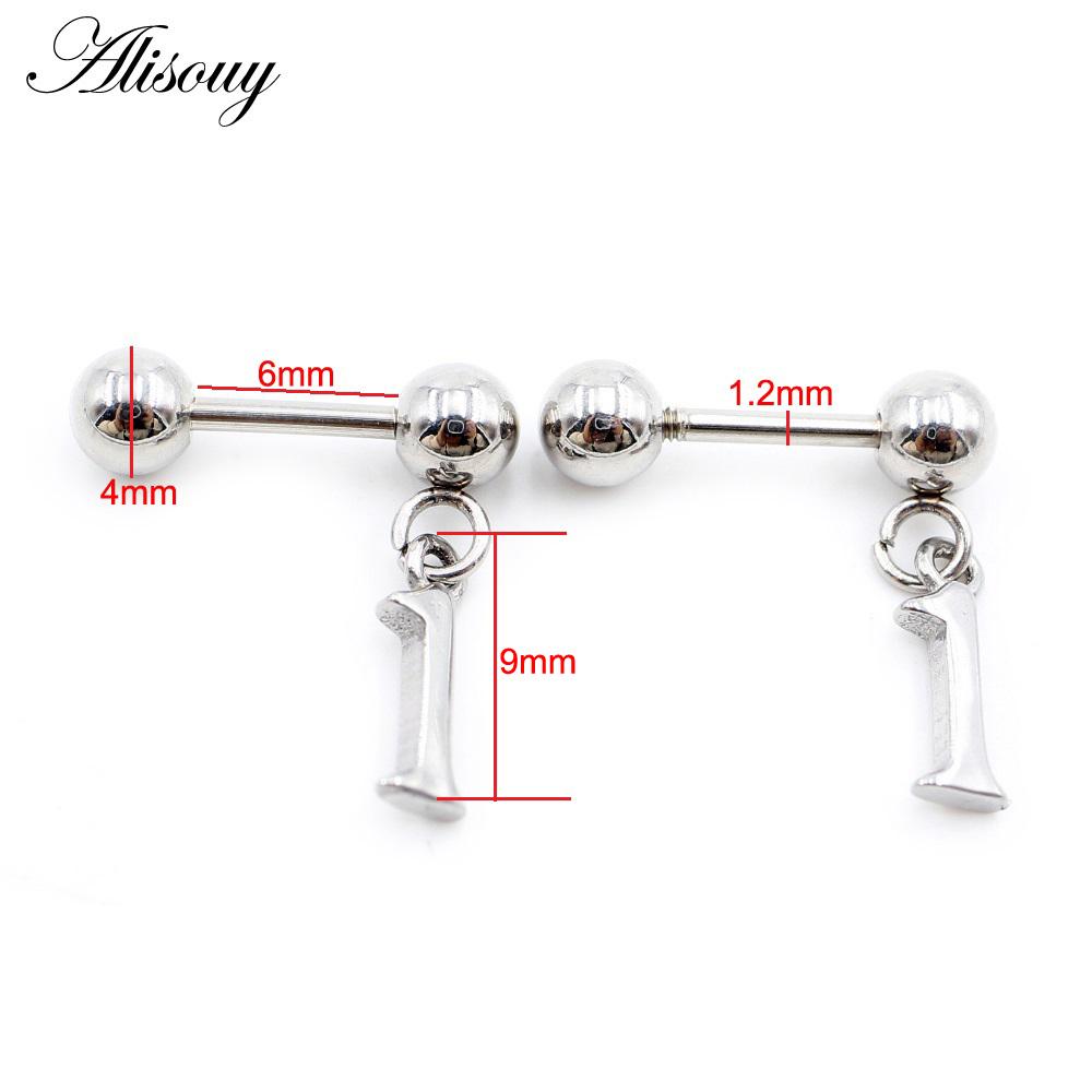 Alisouy 2 шт., подвеска в виде фигурок с арабскими цифрами, 16 г, шарик из нержавеющей стали, штанга, пирсинг, серьги-гвоздики для уха, хряща, козелка, спиральные серьги