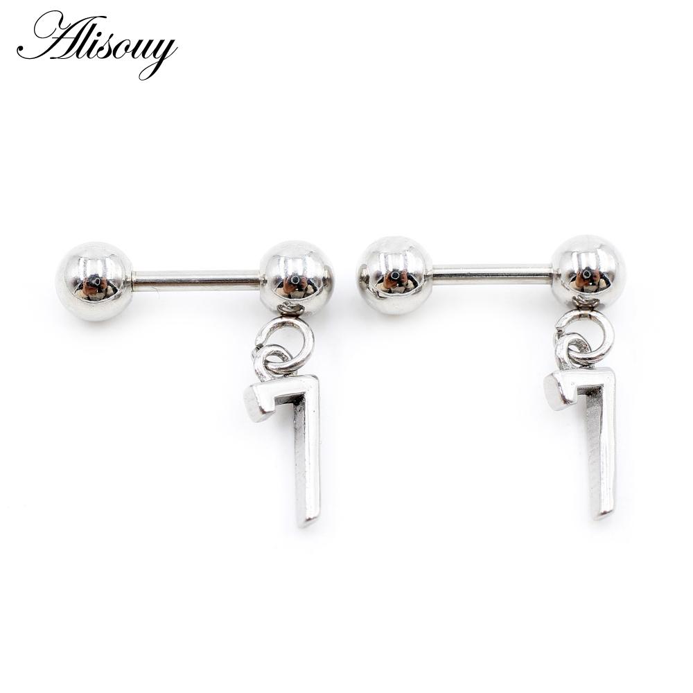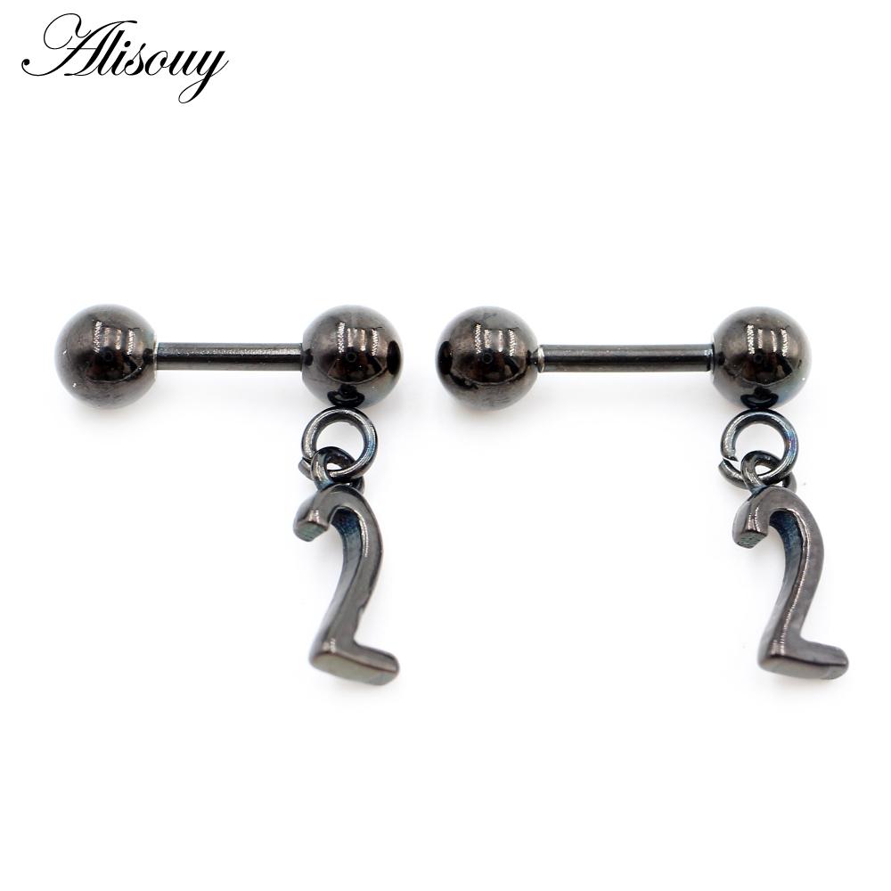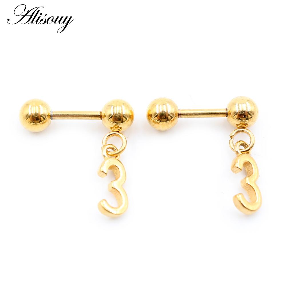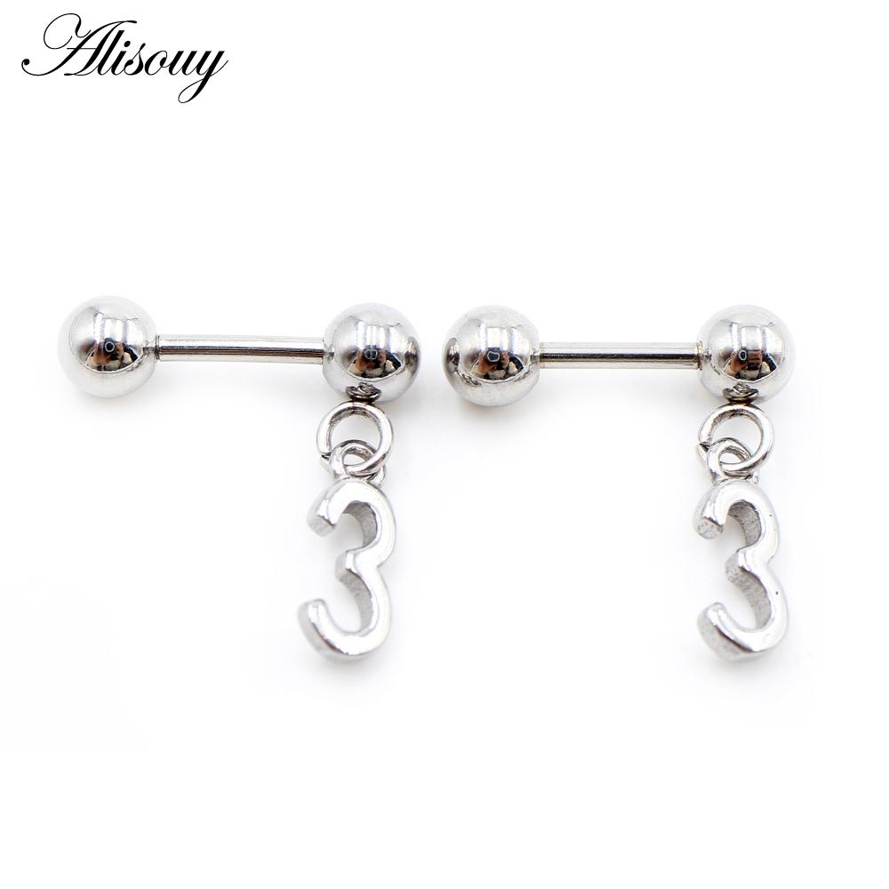Alisouy 2 шт., подвеска в виде фигурок с арабскими цифрами, 16 г, шарик из нержавеющей стали, штанга, пирсинг, серьги-гвоздики для уха, хряща, козелка, спиральные серьги