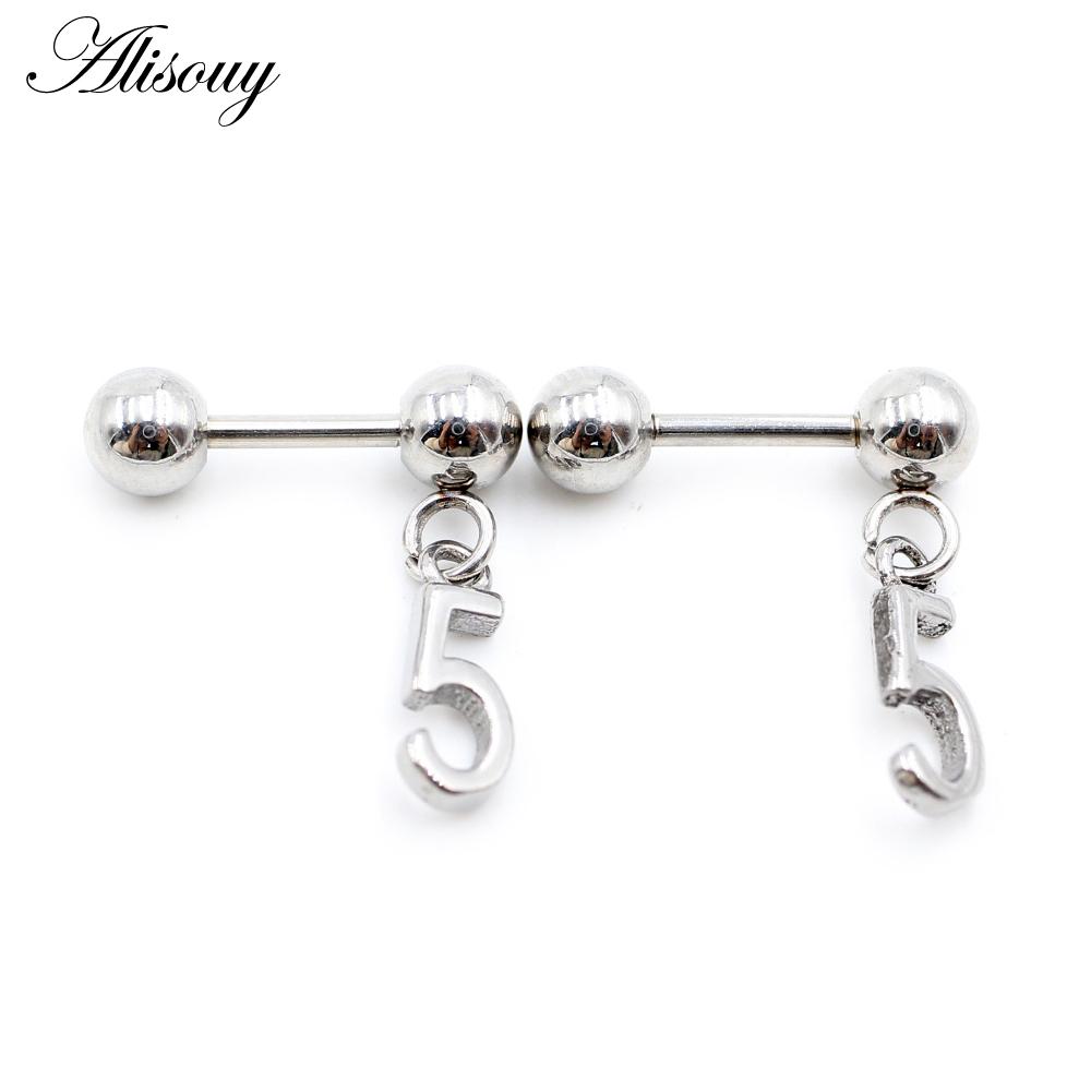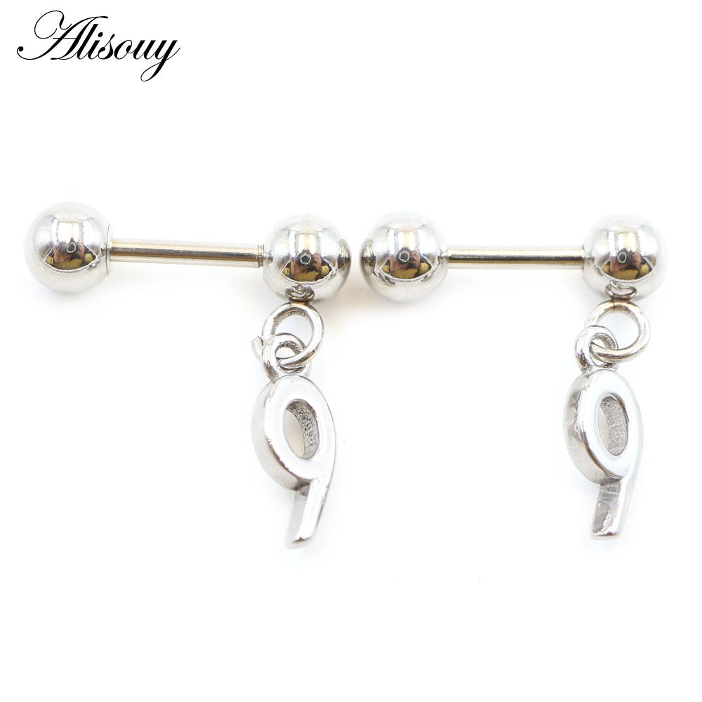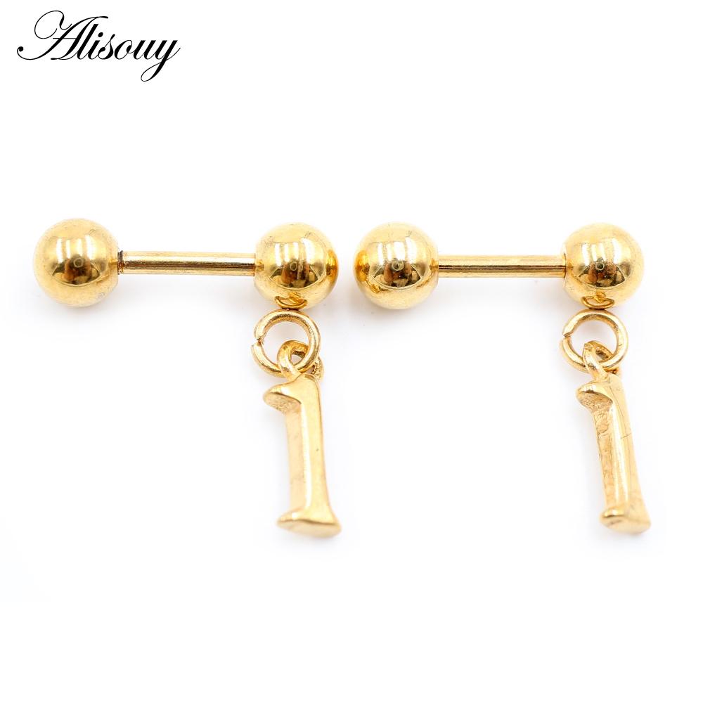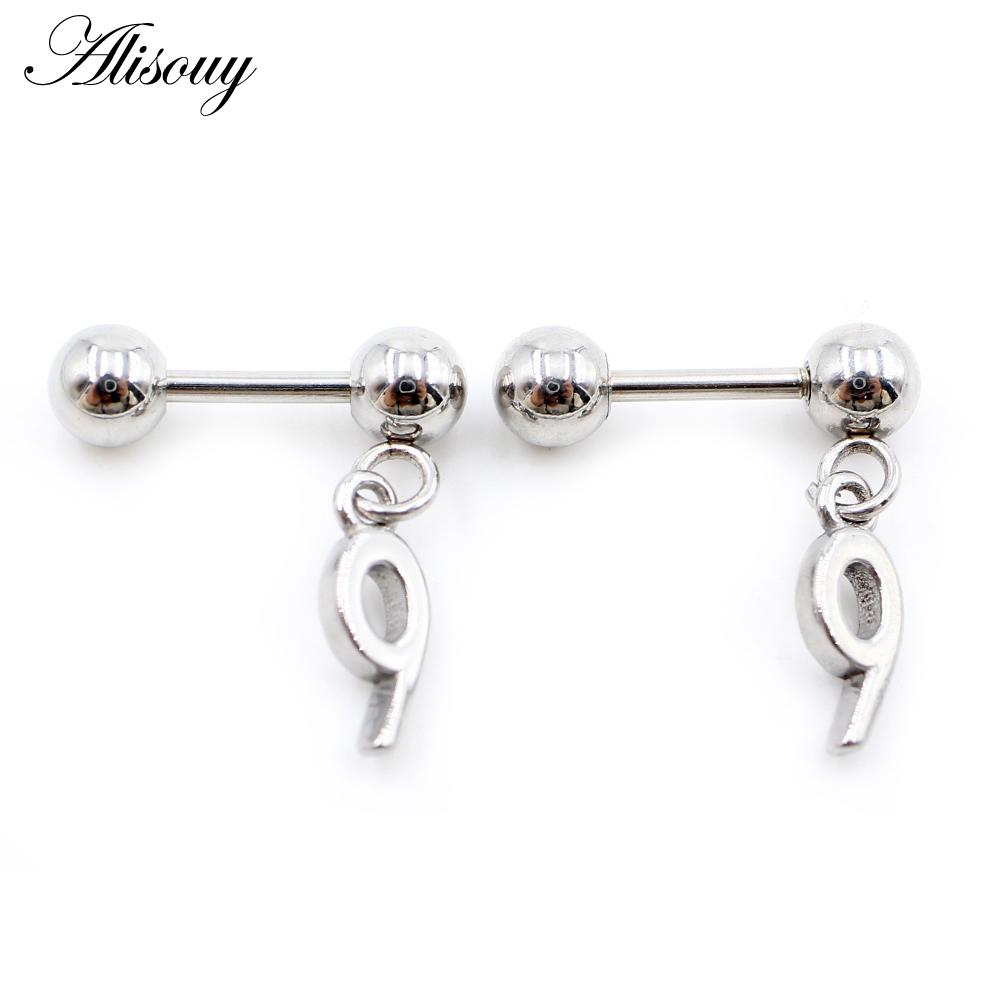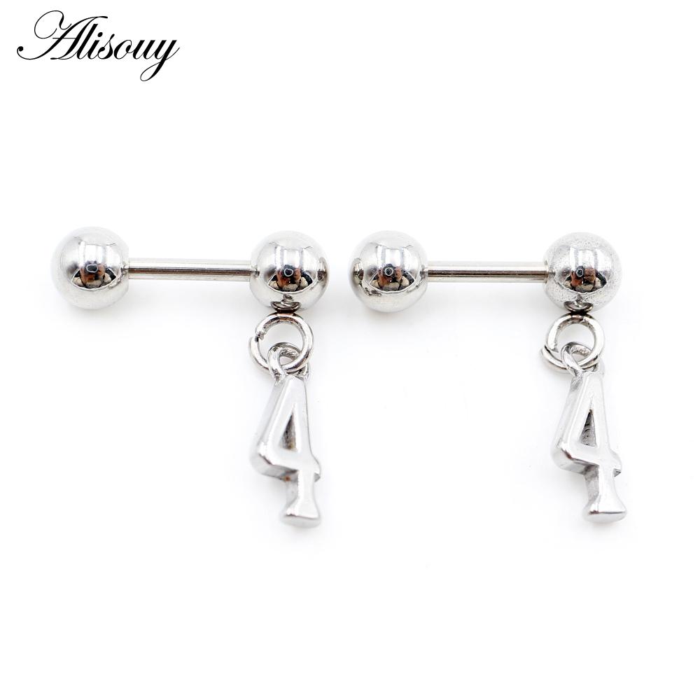 Alisouy 2 шт., подвеска в виде фигурок с арабскими цифрами, 16 г, шарик из нержавеющей стали, штанга, пирсинг, серьги-гвоздики для уха, хряща, козелка, спиральные серьги
