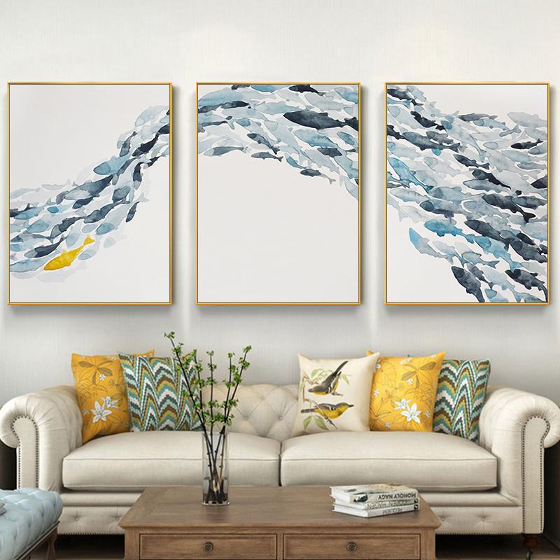 Школа рыб синий акварельный декор скандинавский постер с принтом минималистичный настенный художественный холст картина гостиная домашний декор