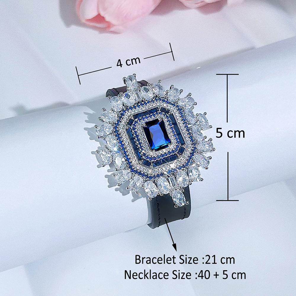 CMM 1 шт., принцесса огранки, королевский синий циркон, серебряный цвет, большой кулон, регулируемый ремень для часов, кожаный браслет, ожерелье, комплект ювелирных изделий из двух предметов