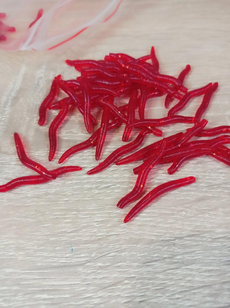 50 Мягкая наживка для дождевых червей диаметром 3,5 см — темно-красная пластиковая наживка в виде личинки, напоминающая дождевых червей с рыбным вкусом.