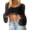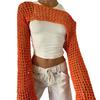 Эта женская короткая блузка с длинными рукавами, однотонным цветом и модным полым дизайном универсальна и модна. Его ультракороткая длина делает его идеальным для наложения поверх обтягивающих футболок, подтяжек, жилета и многого другого. Сочетайте его с джинсами или повседневными брюками, чтобы создать стильный и непринужденный наряд.