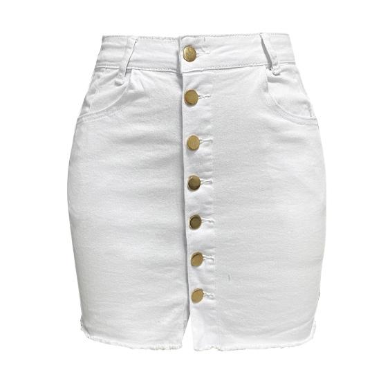 Представляем нашу джинсовую юбку, обязательное дополнение к вашему гардеробу! Эта юбка с завышенной талией создана для того, чтобы ваши ноги выглядели стройнее и стильнее. Модный фасон с завышенной талией и планкой на пуговицах добавляет нотку изысканности любому наряду. Эта юбка, изготовленная из высококачественной полиэфирной ткани, не только мягкая и удобная, но и подходит как для внутренней, так и для наружной одежды в течение всего дня.
