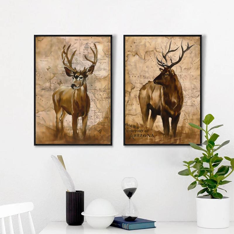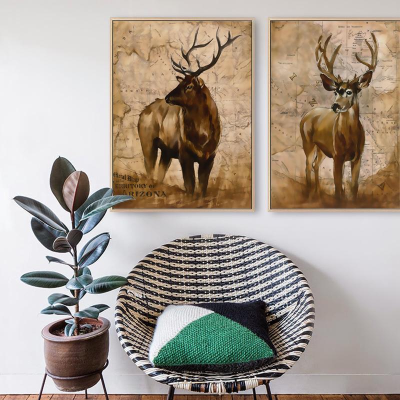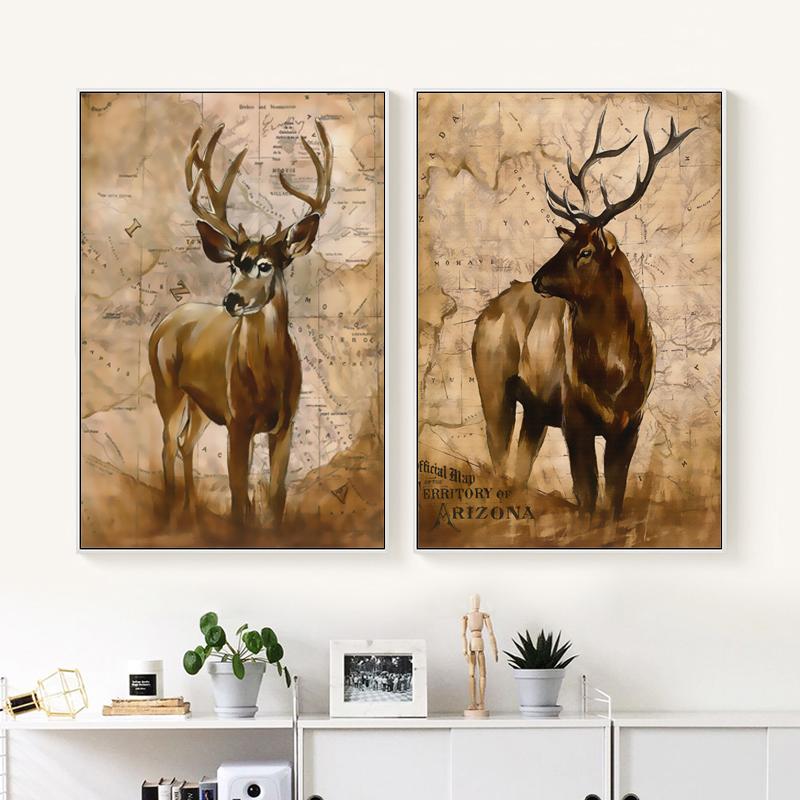 Ретро стиль войны, декоративные животные, олень, холст, картина, художественный принт, плакат, настенные картины, украшение для дома, спальни