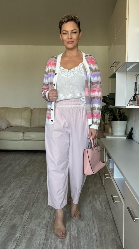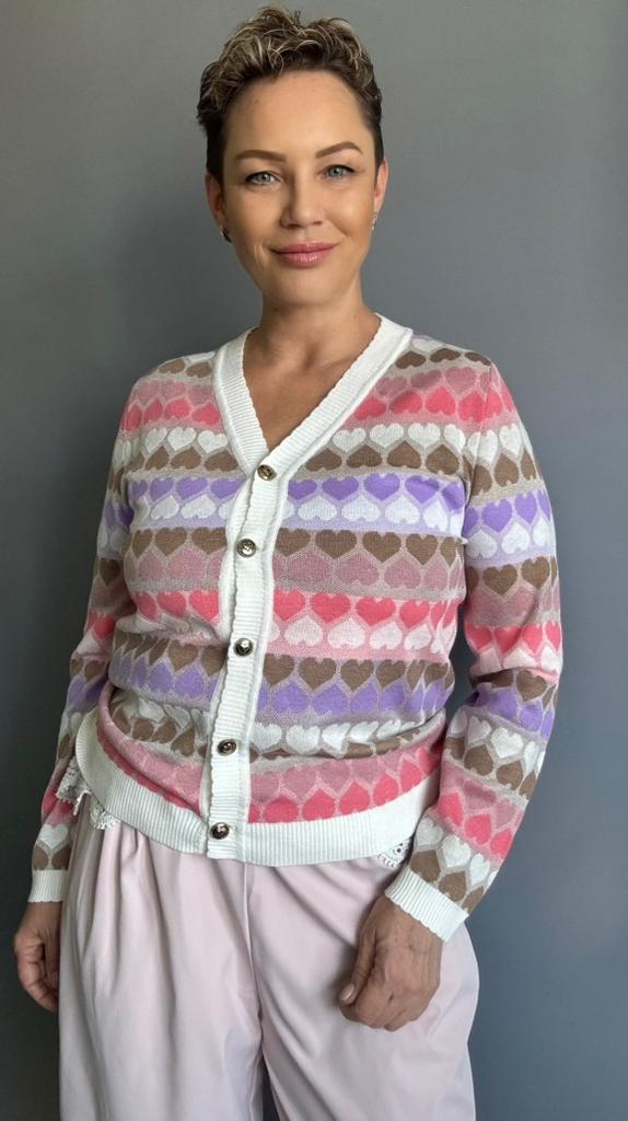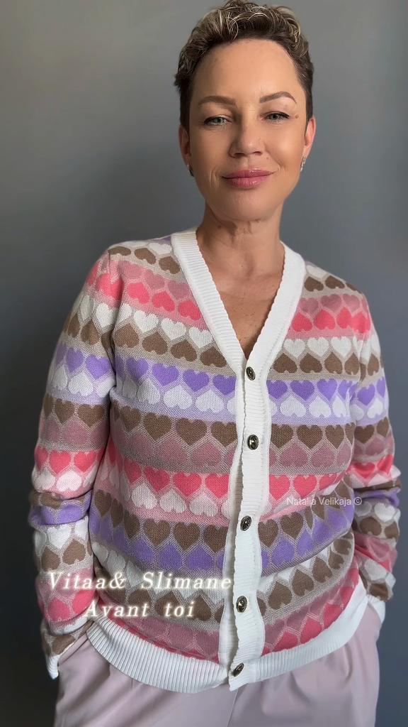 Кардиган с сердечками ✔️Единый размер и цвет Мои параметры: 167, 98-85-100 Сел неплохо, но чуть свободы не хватает. Полагаю, на дамах с параметрами меньше моих, сядет лучше. ✔️Фасон: Классический кардиган с V- образным вырезом На пуговицах Пуговицы премилые, с сердечками ✔️Ткань : На ощупь приятная, не электризуется, тянется умеренно. Этикетки с составом нет. Заявлена вискоза, полиэстер и шерсть. Допускаю, что натуральные волокна в составе присутствуют ✔️Пошив фабричный ✔️Сезон: весна, лето 📐Замеры: Плечи 38 Длина рукава 62 Длина рукава от горловины 70 ОГ подмышками 102 ОТ 100 ОБ 90 Ширина проймы 25 Длина 63