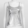 Клубная одежда, топ на бретельках из лакированной кожи, женский топ без рукавов на тонких бретелях, майка, жилет