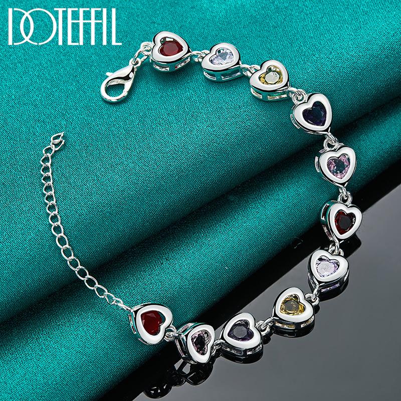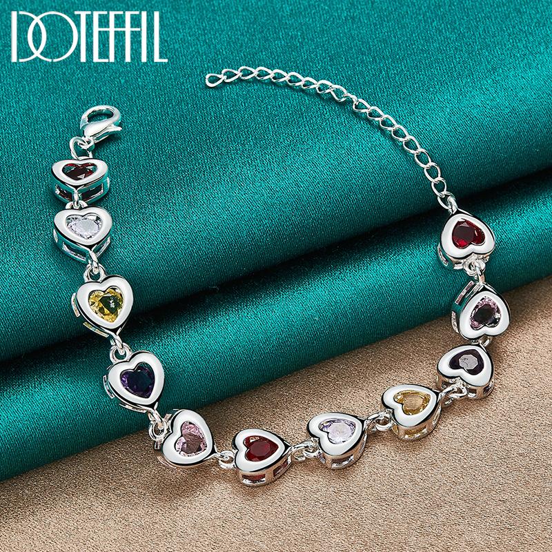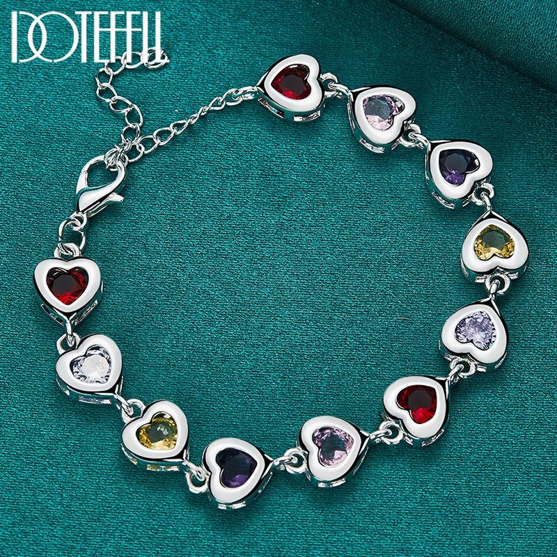 Красочный серебряный браслет с цирконом AAA в форме сердца, подарочные модные украшения