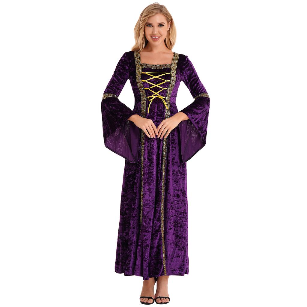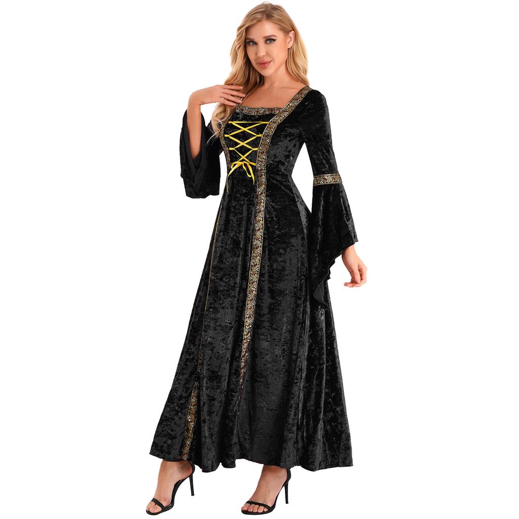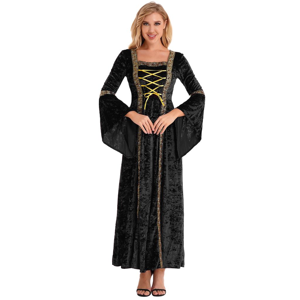 Женское винтажное ретро средневековое платье с расклешенными рукавами на шнуровке, костюм ведьмы для косплея на Хэллоуин