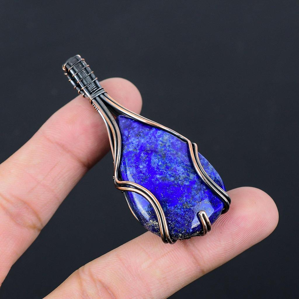 Ювелирный кулон ручной работы из чистой медной проволоки с лазуритом и драгоценным камнем — купить товар онлайн с бесплатной доставкой по всему миру!