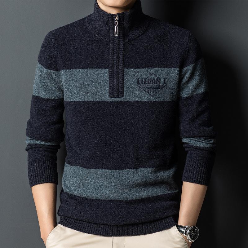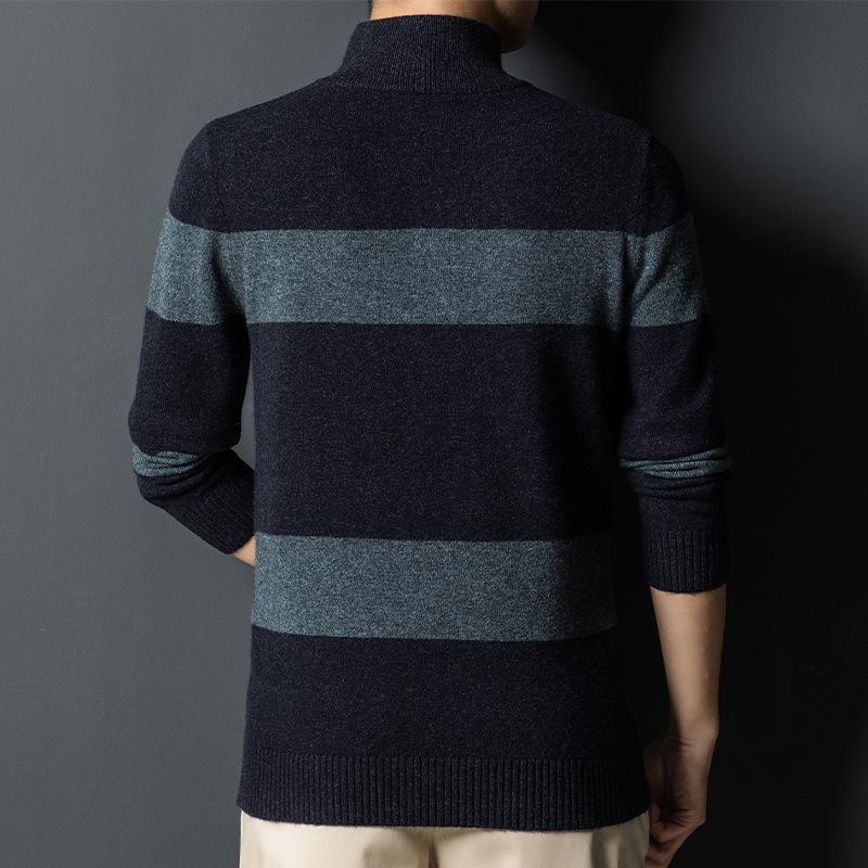 Мужская шерстяная шерстяная осенне-зимняя повседневная трикотажная рубашка с контрастным воротником на молнии, свитер с полувысоким воротником