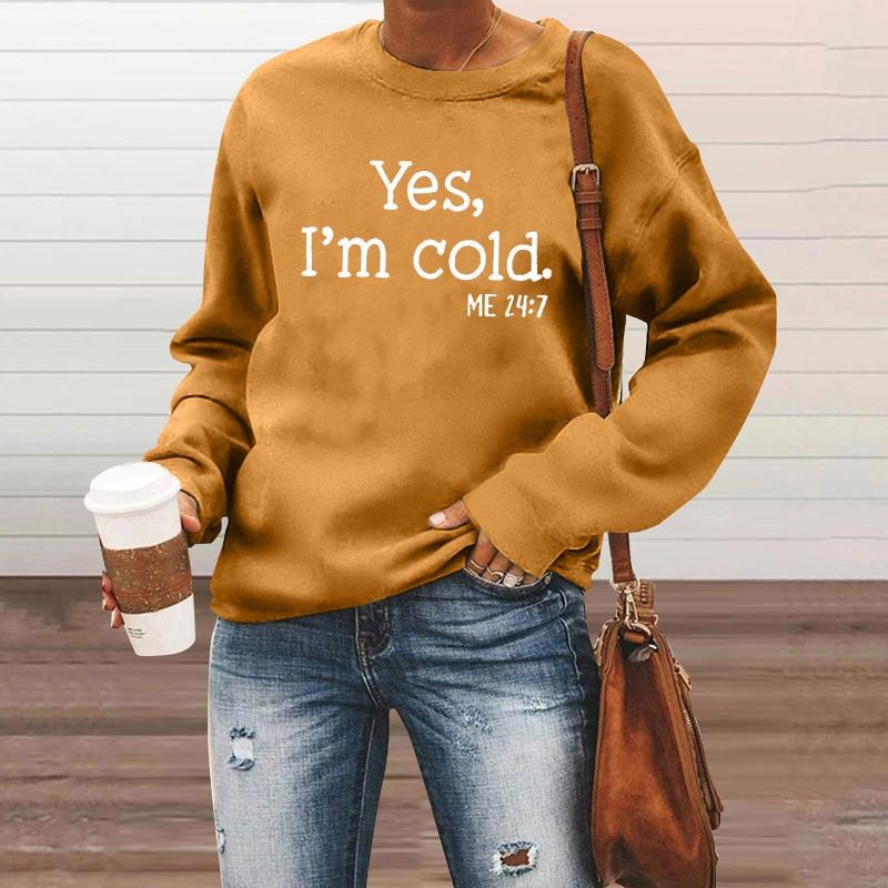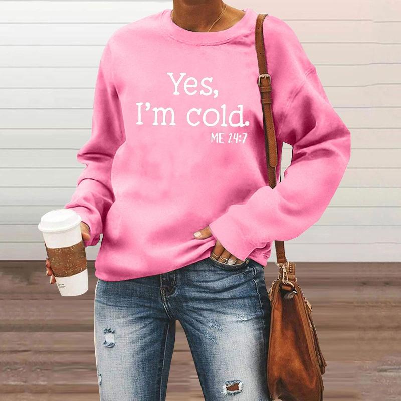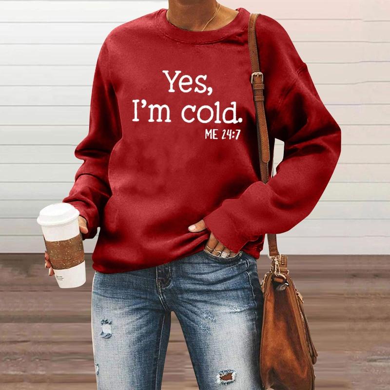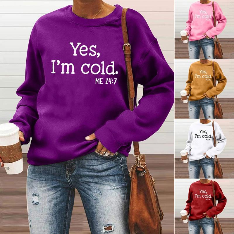 Осенне-зимний модный женский повседневный пуловер с длинными рукавами, свитер, топы, забавные толстовки с буквенным принтом «Да, мне холодно»