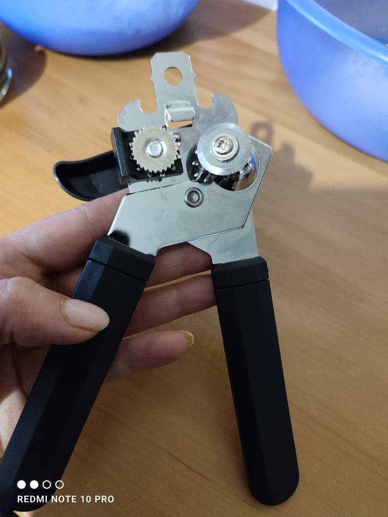 Я не знаю для кого эта открывалка! Я должен одновременно держать банку,открывалку и крутить ручку. При этом она режет где угодно только не там где положено. Бесполезная открывашка. Кто её проектировал?