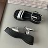 Женские сандалии в романском стиле с толстой подошвой и увеличенной подошвой, новинка 2023 года, модные повседневные простые универсальные однотонные сандалии на лето