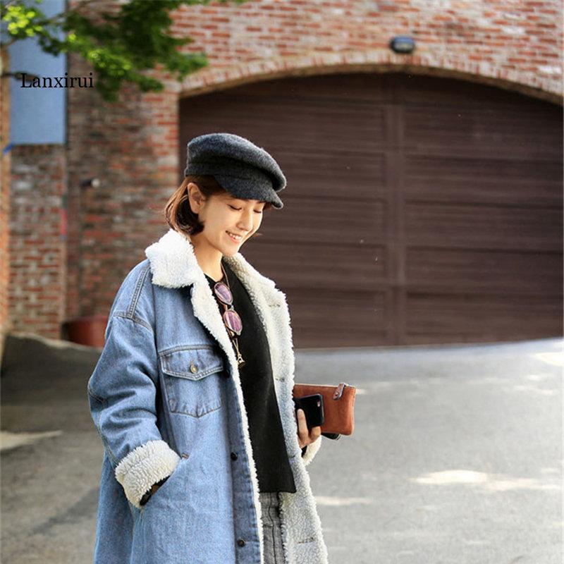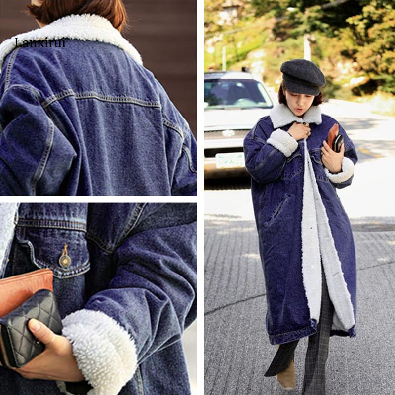 Утолщенный бархатный джинсовый плащ X-Long ягненка, зимние длинные плащи для женщин, однобортные джинсовые пальто с дизайном