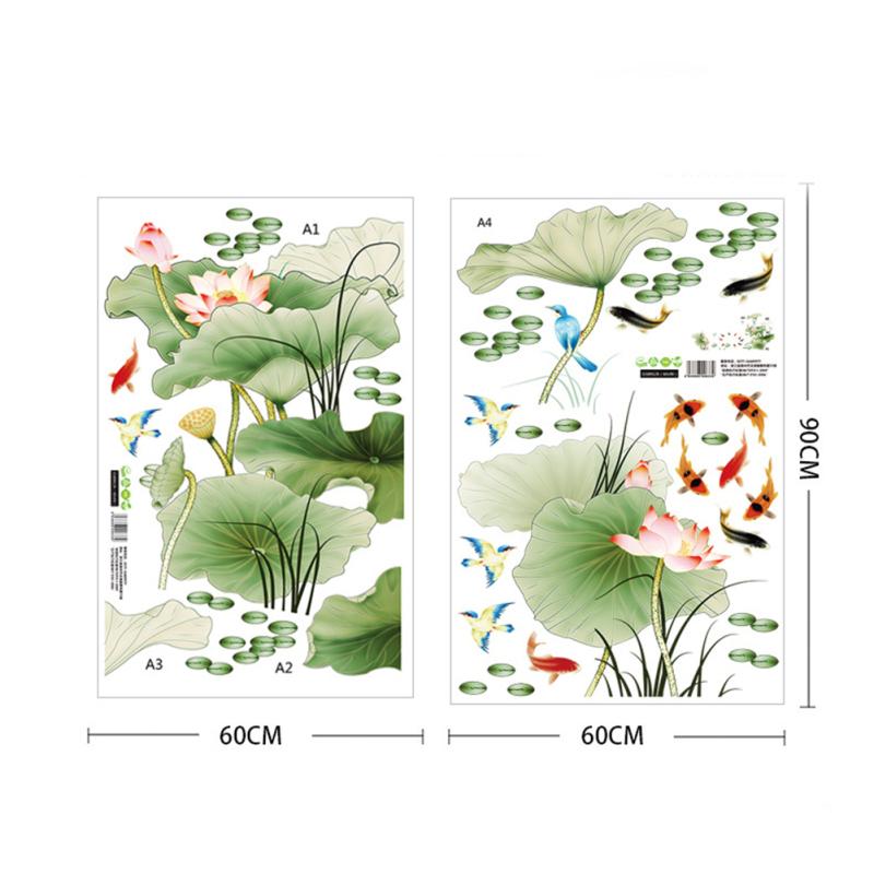 ПВХ лотос карп летающая птица наклейки на стену в китайском стиле виниловые настенные самоклеящиеся обои для спальни