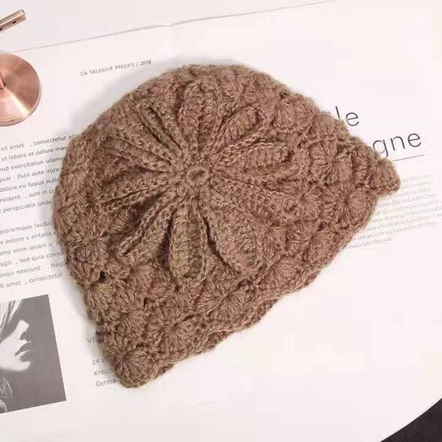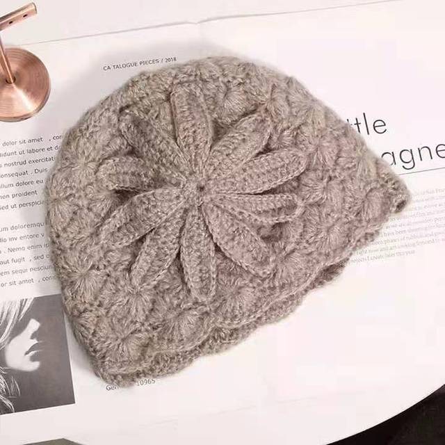 Женская шапка осень-зима, корейская версия, элегантная трехмерная трехмерная вязаная теплая шерстяная шапка из мохера с большим цветком