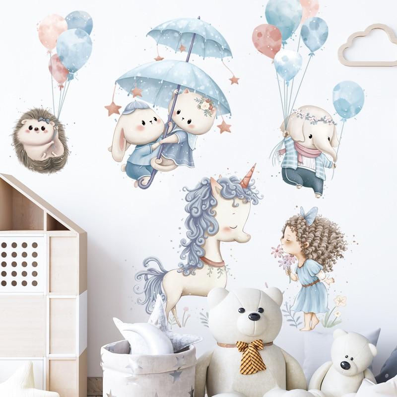 Милый Единорог Кролик Наклейки На Стены Детская Комната Детская Настенный Декор Наклейка Красивые Девушки Летающий Слон Мультфильм Наклейки Домашний Декор