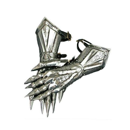 1. Замысловатая гравюра рыцаря: Наши стальные перчатки украшены замысловатой гравюрой на рыцарскую тематику, что придает вашему костюму нотку аутентичности.. Внимание к деталям в дизайне делает их идеальными для исторических реконструкций или косплея.