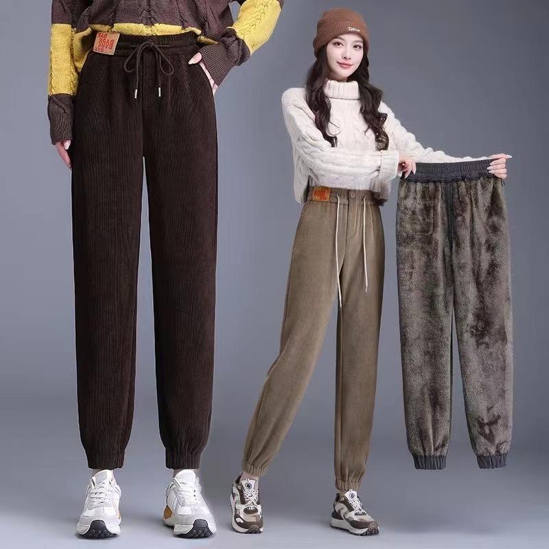 Модные большие плюшевые осенние и зимние новые теплые повседневные брюки
