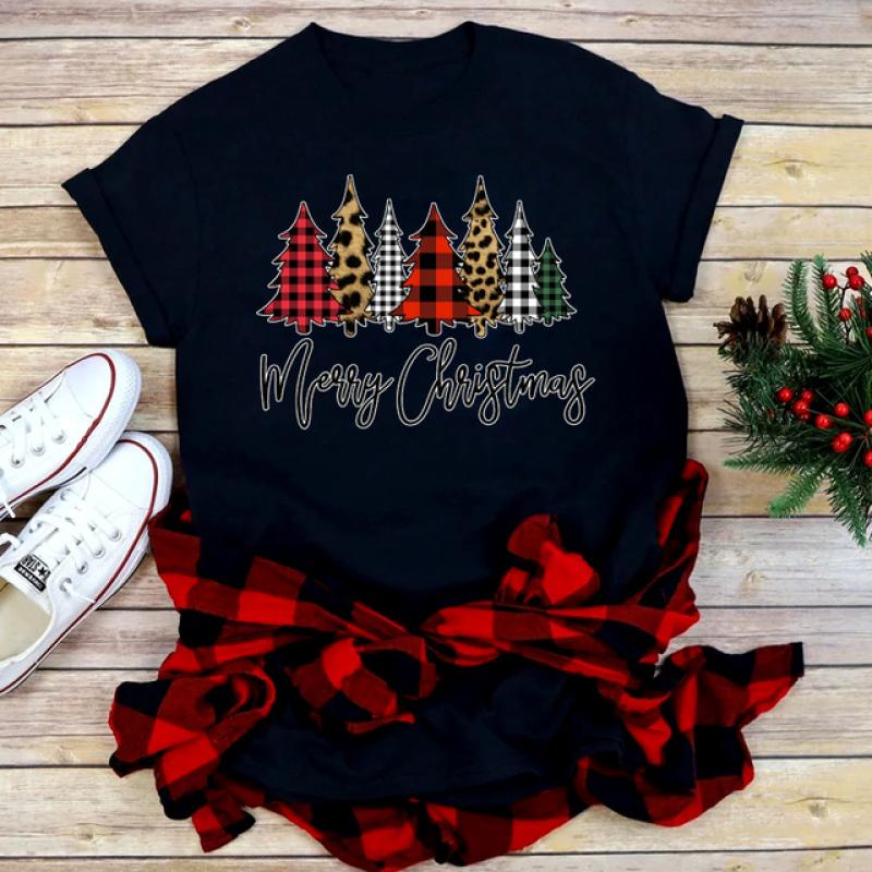 Женская черная футболка с рождественским леопардовым принтом и рождественскими подарками, женская футболка в стиле Харадзюку, модная новогодняя футболка