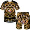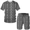 Винтажный узор с 3D принтом для мужчин, летние футболки с короткими рукавами + шорты, комплект из 2 предметов, наряд для пары, стильный хипстерский уличный костюм
