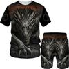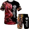 Летний мужской комплект из двух предметов с 3D-принтом Warcraft Dragon: Футболка и шорты — повседневная спортивная одежда в винтажном стиле