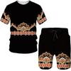 Мужские футболки и шорты, комплект, модный золотой узор, роскошный спортивный костюм с цветочным 3D принтом, повседневная уличная одежда, мужской костюм