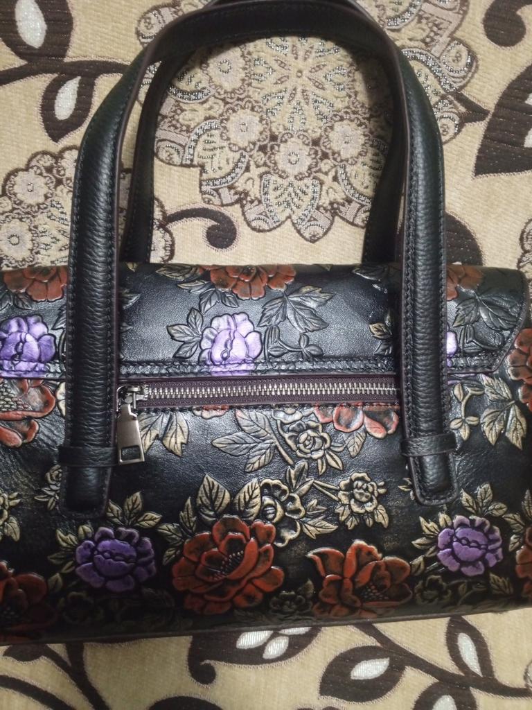 Натуральная кожа, упакована хорошо. Звезду сняла, потому что на ремне через плечо носить нельзя, ручки высокие, большие, некрасиво торчат. А если в руке, на запястье, смотримся хорошо.