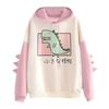 Толстовка с капюшоном с изображением динозавра, женская модная толстовка, повседневный утепленный свитшот с принтом в Корейском стиле, зимняя толстовка с динозавром, топы