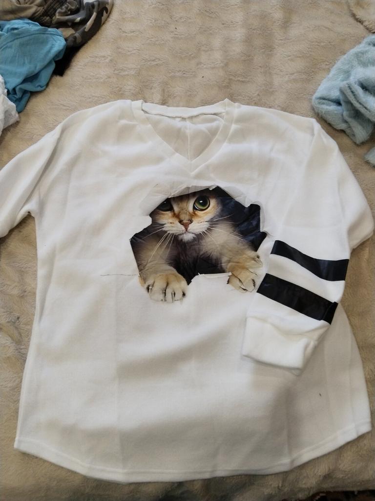 Осенний топ с V-образным вырезом, свободный пуловер в полоску с кошачьим сердцем и длинными рукавами, нерегулярный — купить товар онлайн с бесплатной доставкой по всему миру!