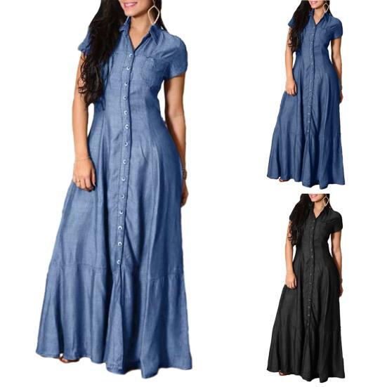 Однобортное джинсовое платье 3D-кроя, с воротником рубашки и короткими рукавами, идеально подходит для выпускного вечера или вечеринки.
