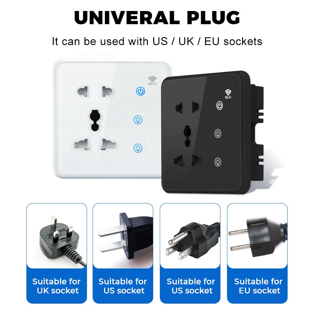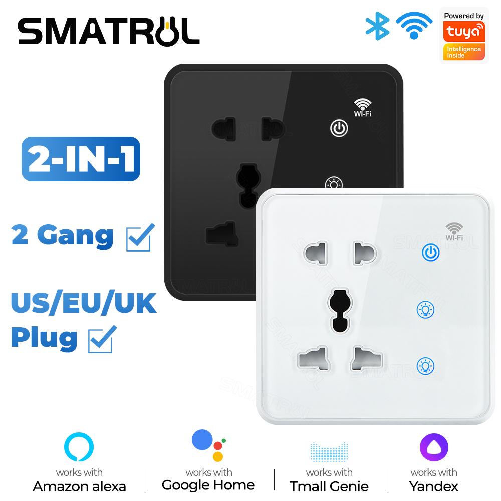 Tuya Wi-Fi настенная умная розетка 2-клавишный переключатель света Touch Us EU UK Plug закаленное стекло синхронизация электрическое приложение для Google Home Alexa